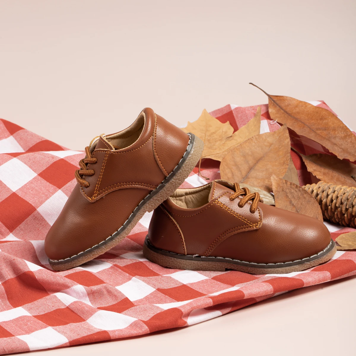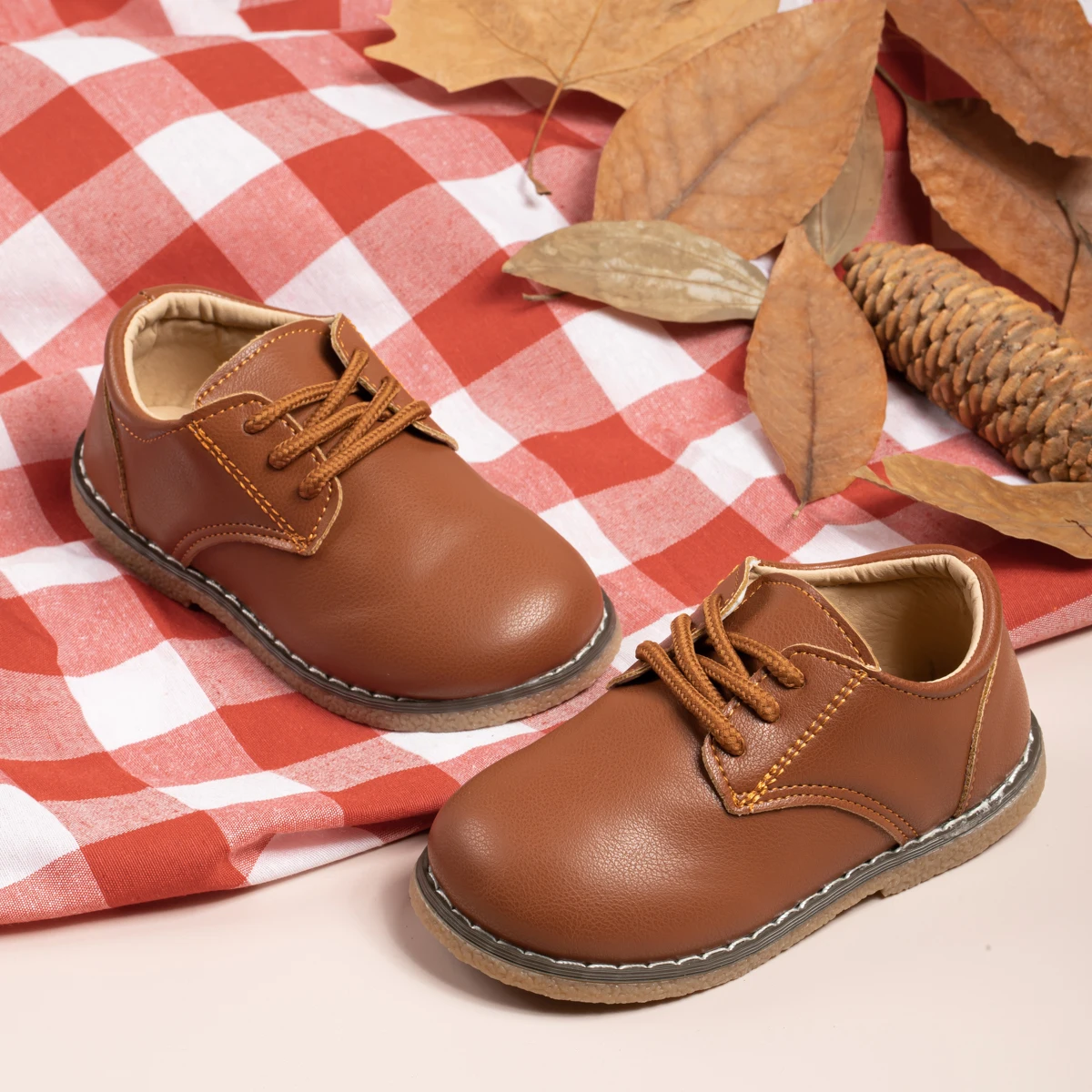 KIDSUN New Oxfords Dress Girl Shoes School Party Rubber Soft Anti-slip Leather Boys Kid Shoes Lace-up Casual Children’s Shoes