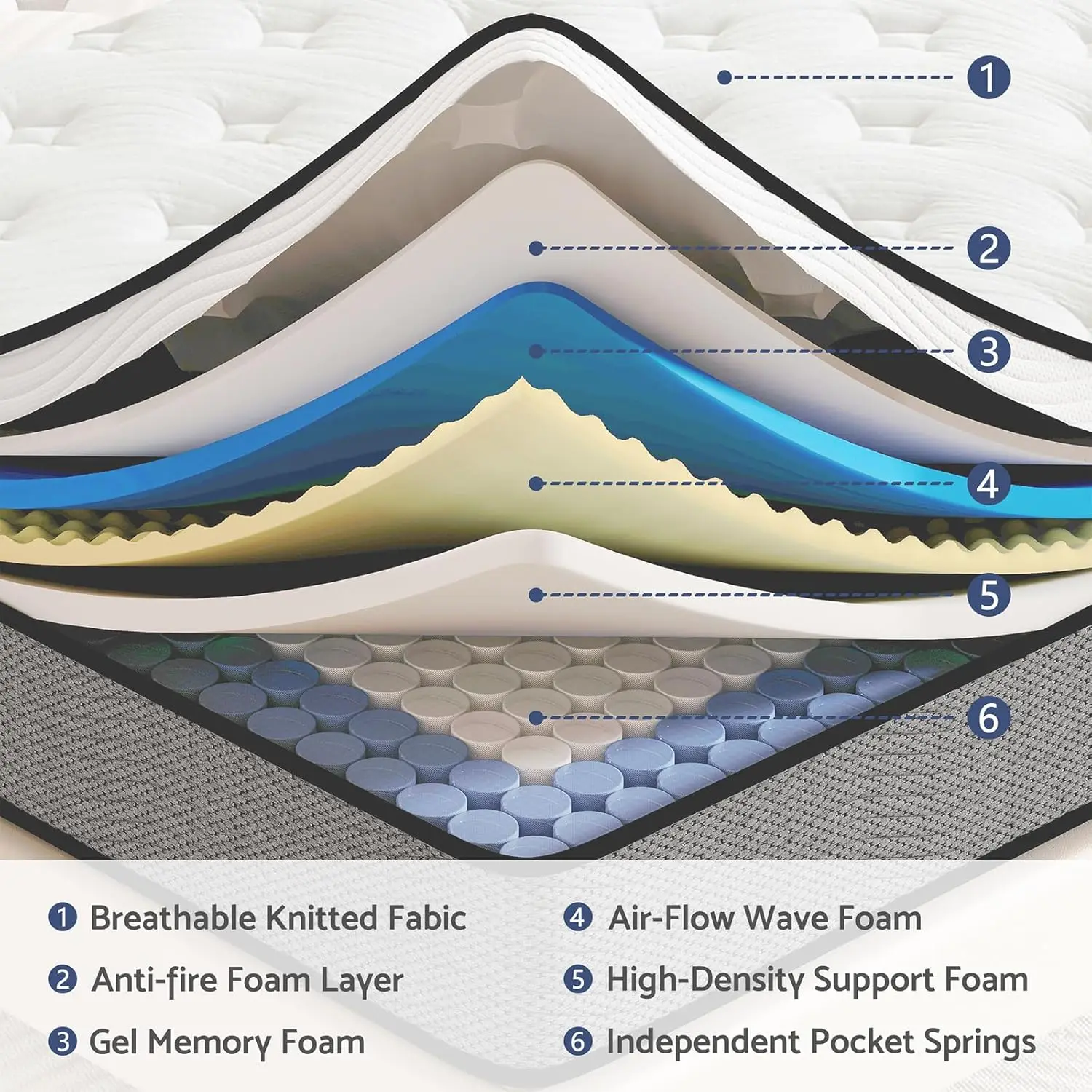 - 【High Material for Health】Bednew king size mattress features a hybrid design that combines premium memory foam with individually pocketed springs. Provides you with superior comfort and targeted support, ensuring your weight is evenly distributed, relieving pressure and promoting restful sleep.