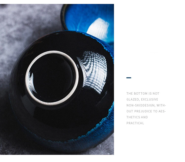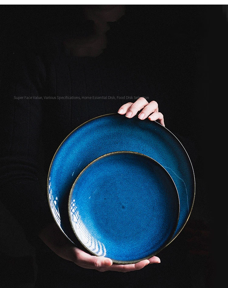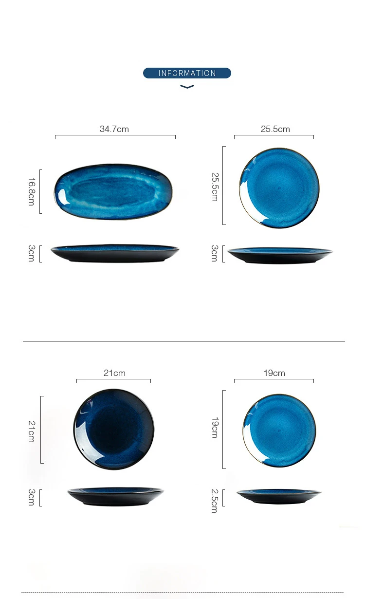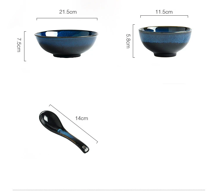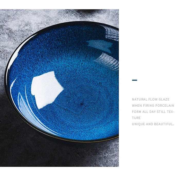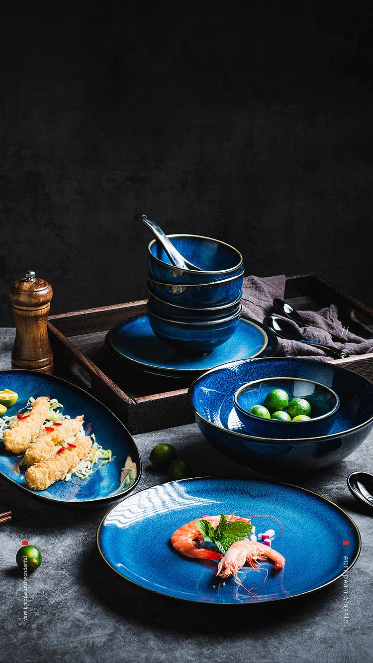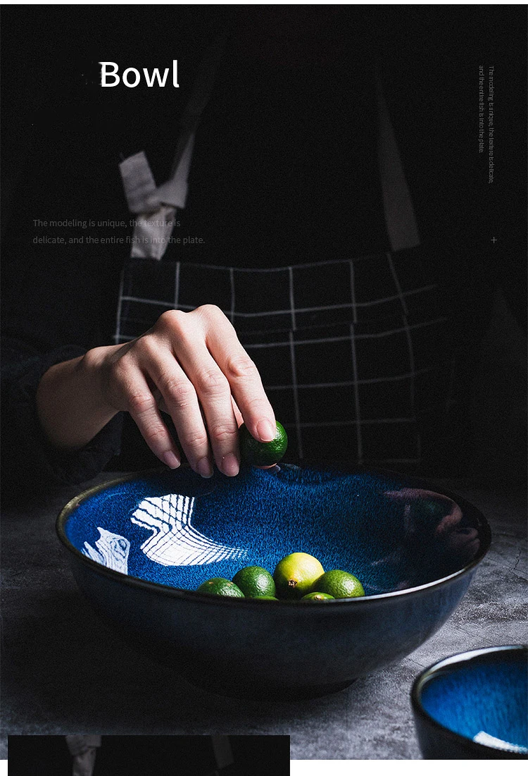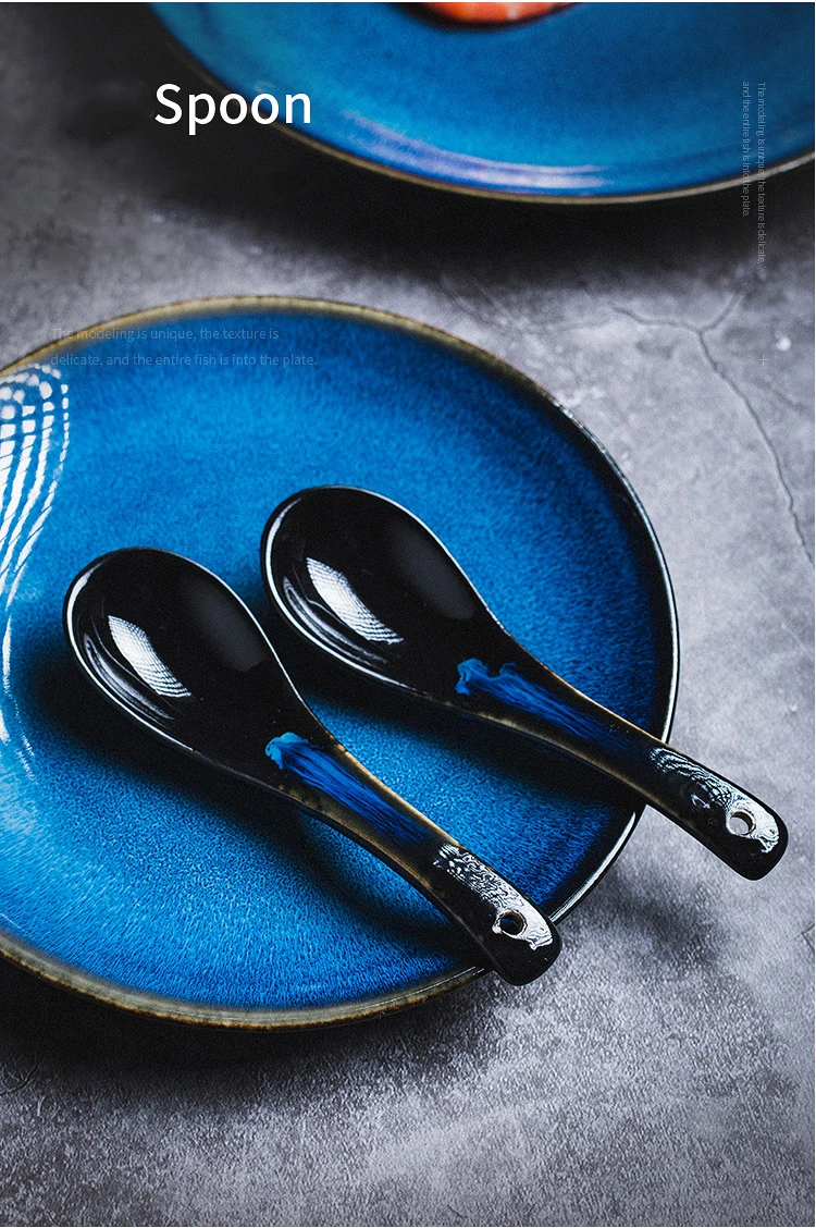 KINGLANG Single Japanese Blue kiln glazed ceramic tableware set rice bowl plate spoon Udon Ramen soup bowl dish