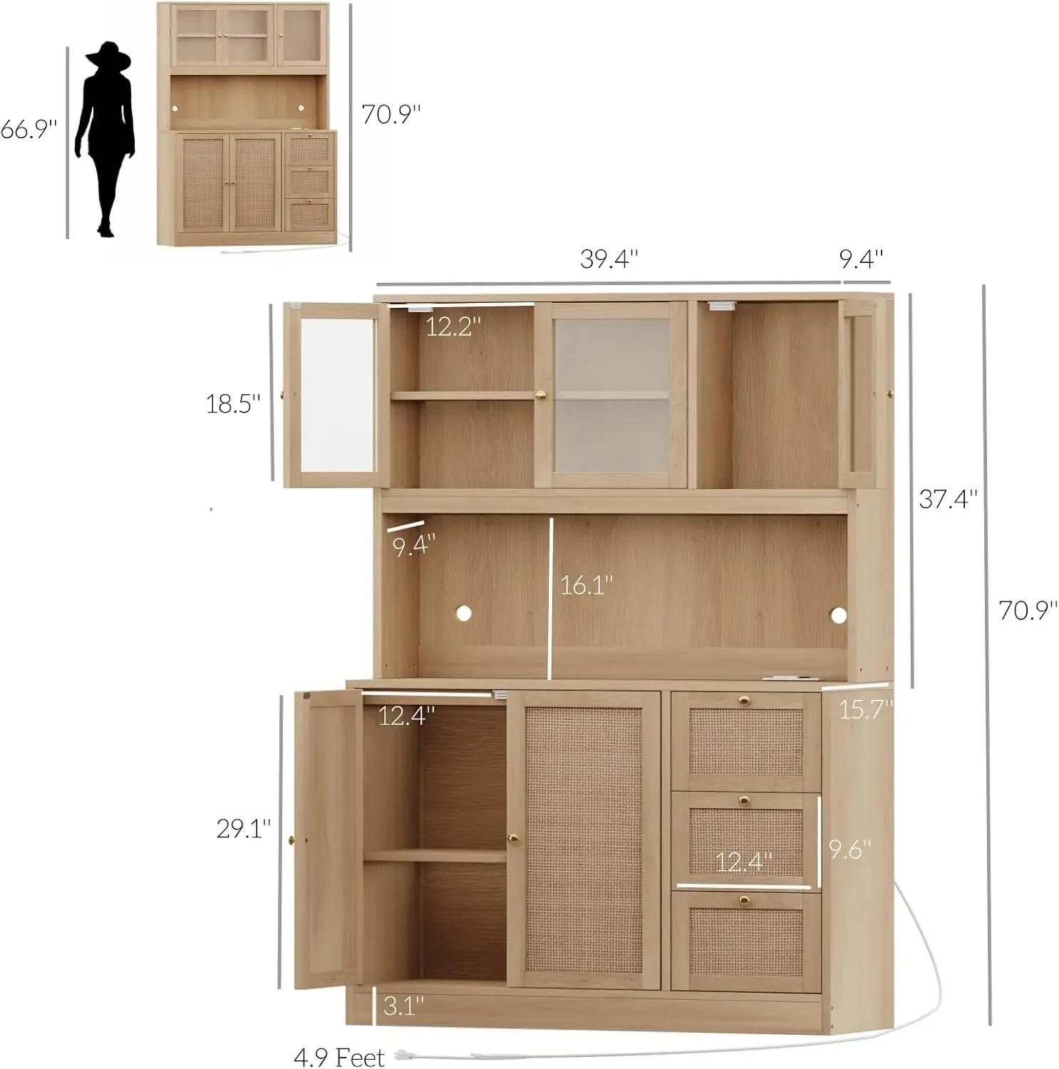 - Charging Function: The pantry storage cabinet is equipped with 2 AC outlets for charging microwaves, coffee makers, toaster and other appliances, which is easy to access and give you a clean countertop. Also, it is ready to power your phone, computer, tablet, record player, game console and more in the living room