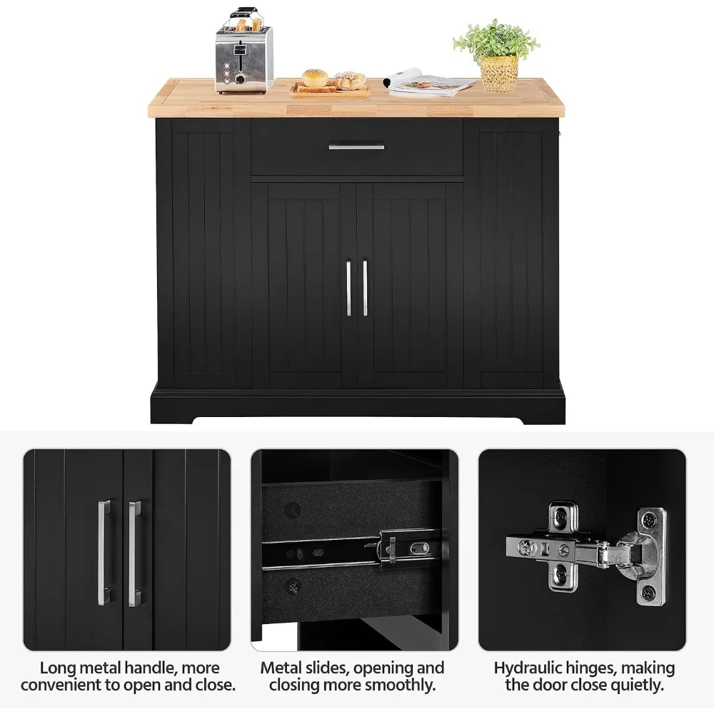 - Make Kitchen Items At Handy: A wide countertop to store kitchen appliances like coffee makers and air fryers or snacks. A roomy drawer on full extension metal slides offers out-of-sight storage for daily-used culinary tools like plates and silverware; 2 side drawers can hold small-sized kitchenware like knives and napkins; the double-door cabinet and side open shelves store your food, bottles, and jars neatly.