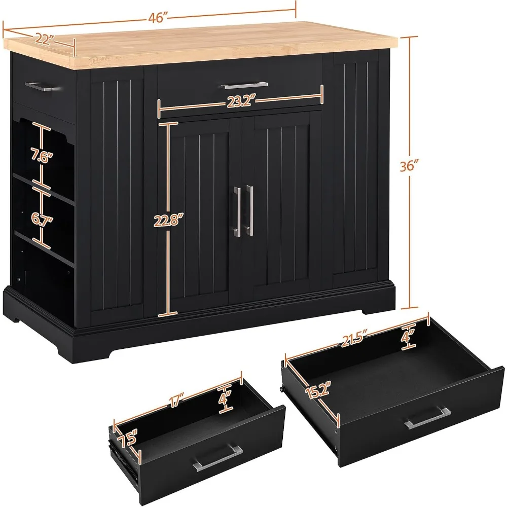 - Ultra-Large Capacity: Featuring a wide desktop, a big drawer, 2 side drawers, a double-door cabinet, and 2 side open-shelf cabinets, this utility kitchen island cart provides super-large storage space for all the essentials. The kitchen organizer can hold up to 230 kg / 507 lb in total, and the maximum load capacity of the counter space is 80 kg / 176 lb.