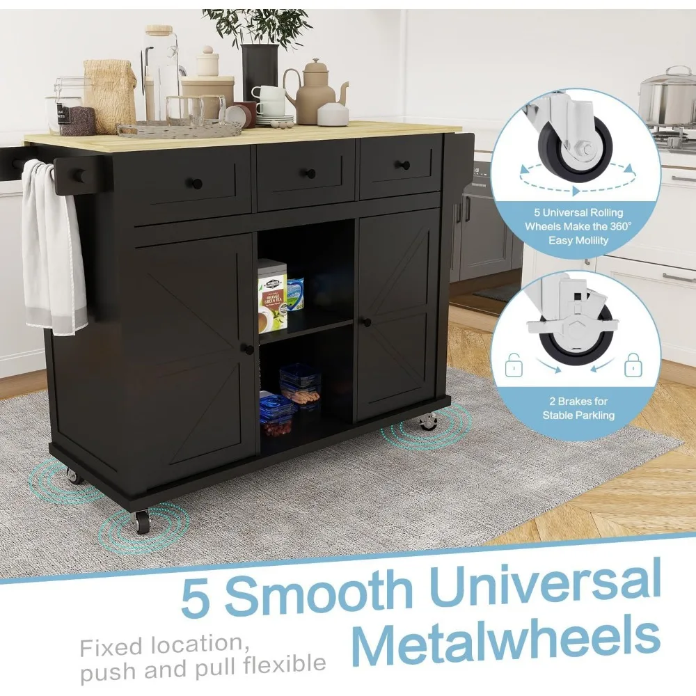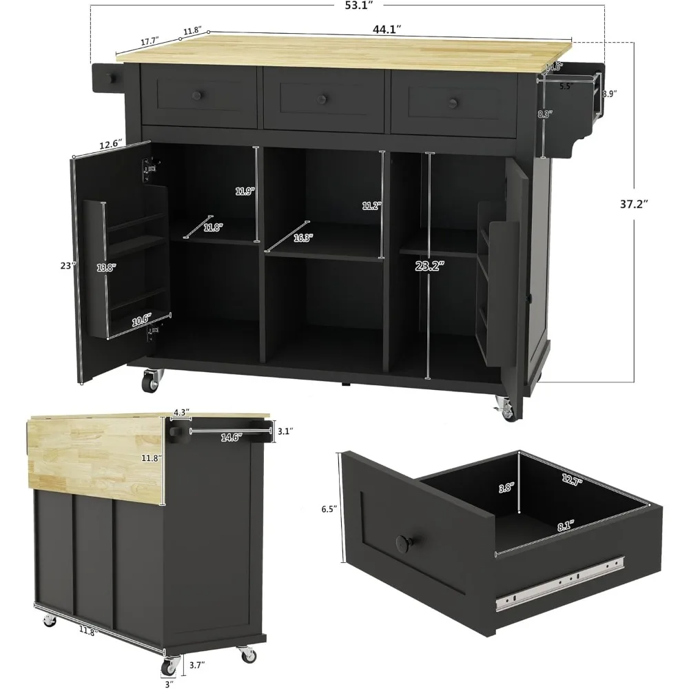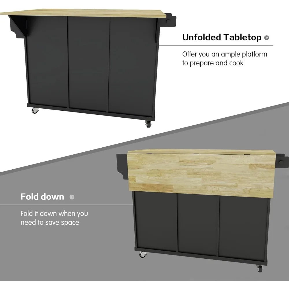 - 【With Drop Leaf Countertop】Featuring a folding drop leaf, this island cart effortlessly transitions into a convenient dining bar. Extend it whenever additional dining space is required, or easily fold it down to optimize space and maintain compactness when not in use.