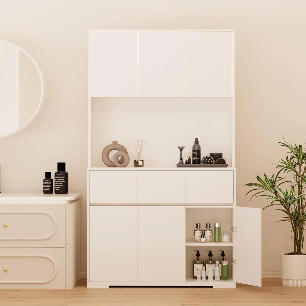- 【Ample Storage Space】This cabinet comes with three large-capacity drawers for smaller, frequently used items and two three-door storage compartments with adjustable shelves. You can easily adjust the shelf height to maximize storage based on your needs.