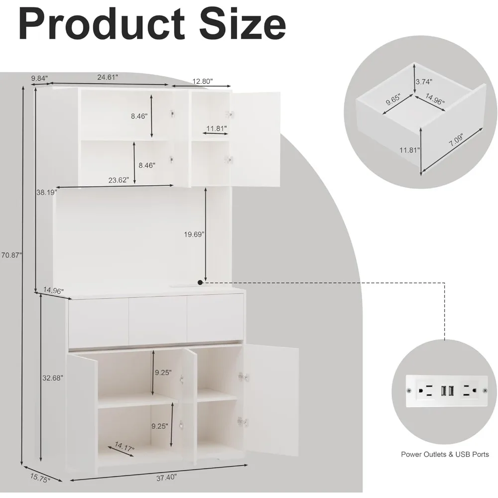 - 【Expanded Workspace】This cabinet features an oversized countertop with built-in power outlets, including 2 AC sockets and 2 USB ports. It’s perfect for placing appliances like microwaves and coffee machines, simplifying your cooking process and enhancing your kitchen experience.