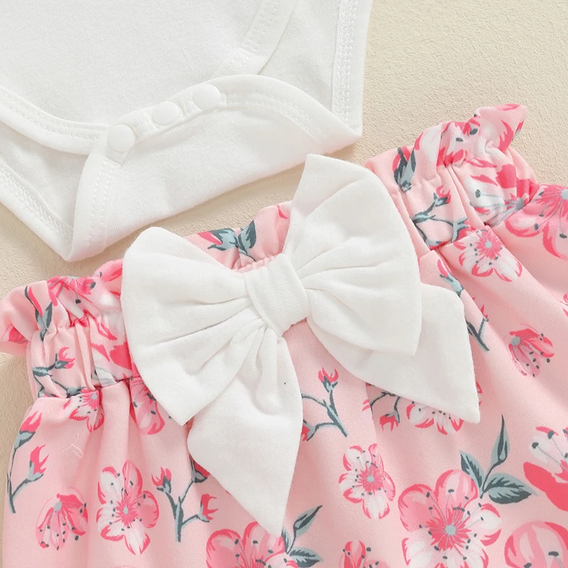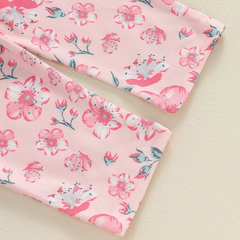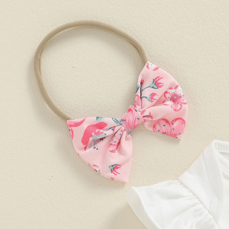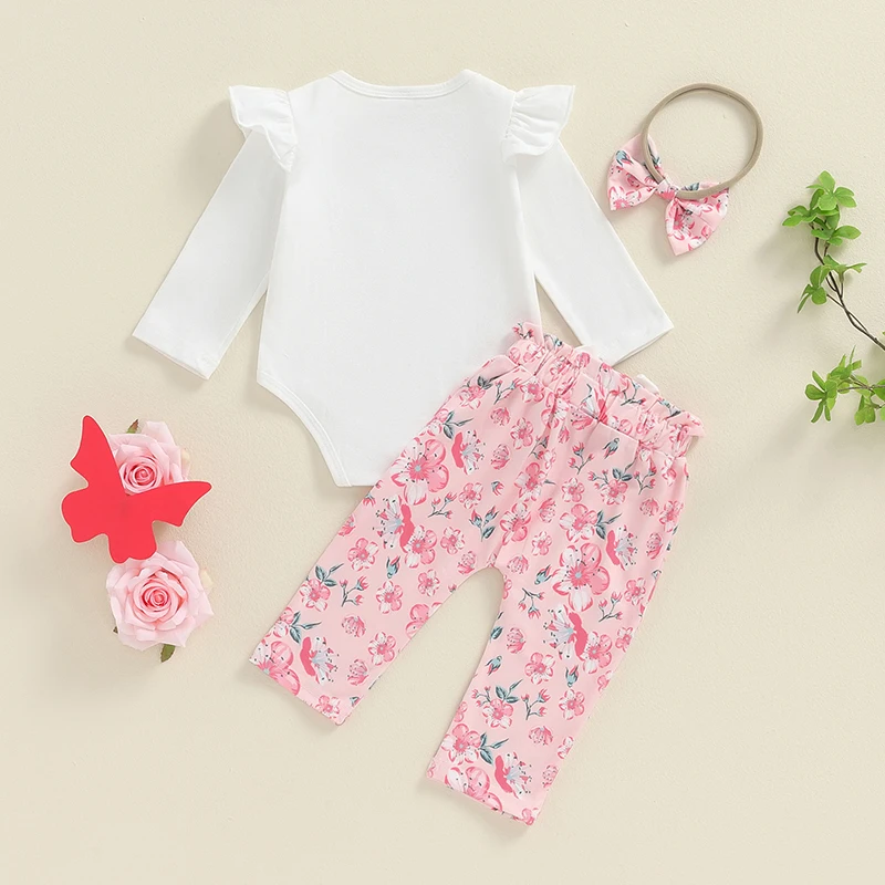 Baby Girls Fall Outfit, Flower Print Long Sleeve Romper with Pants and Bowknot Headband Clothing Set