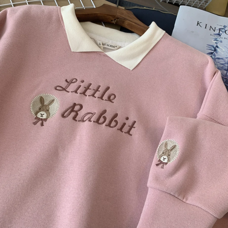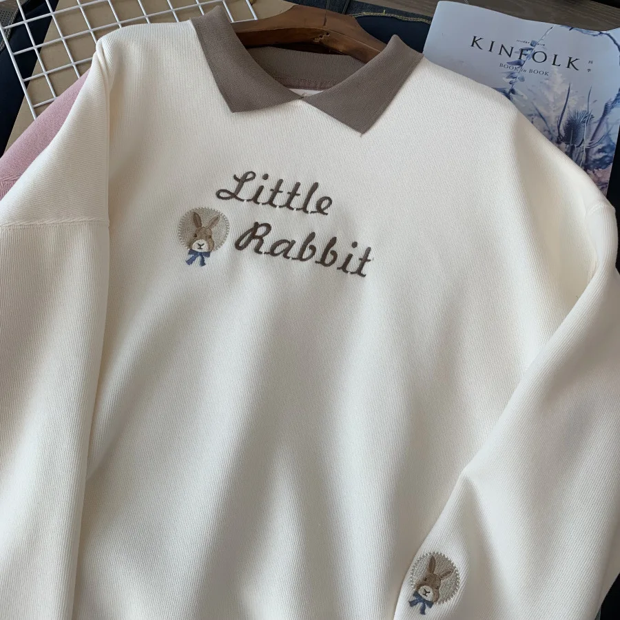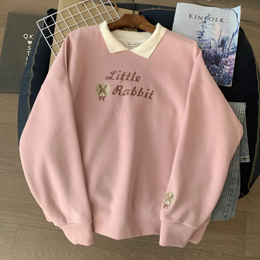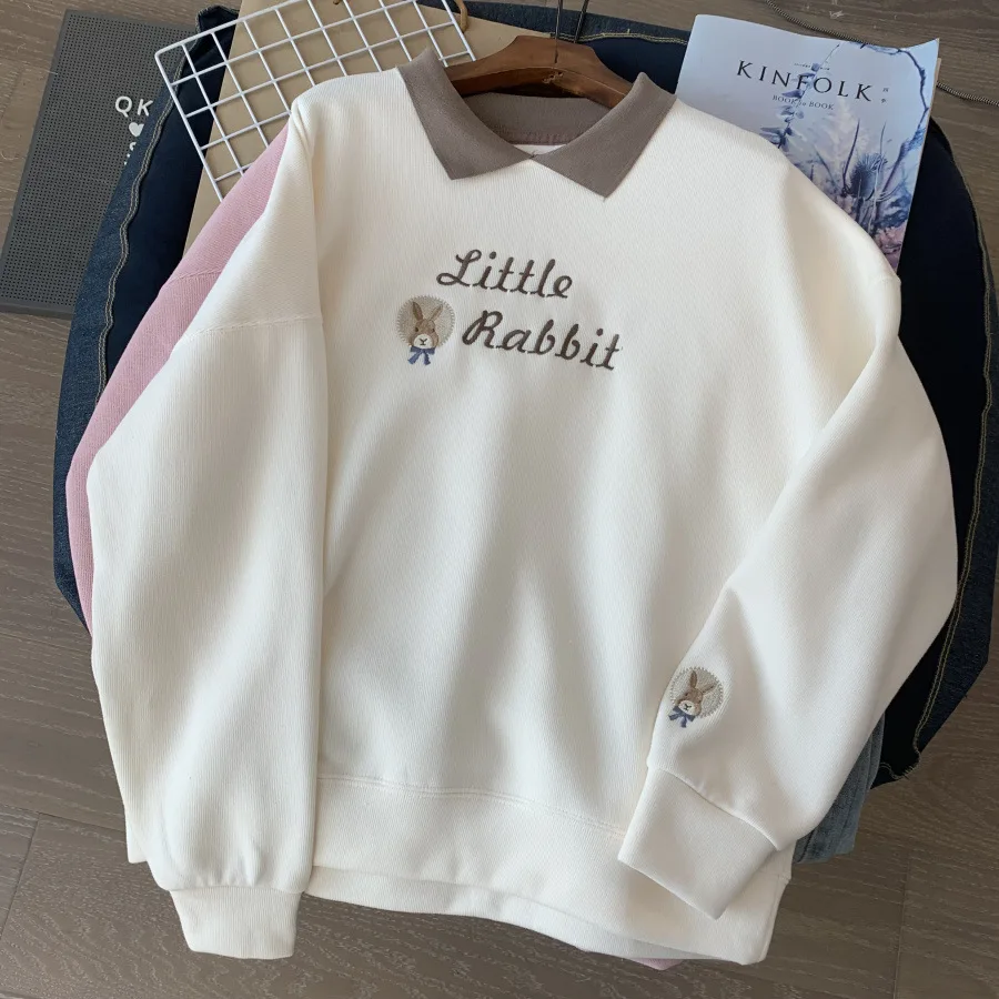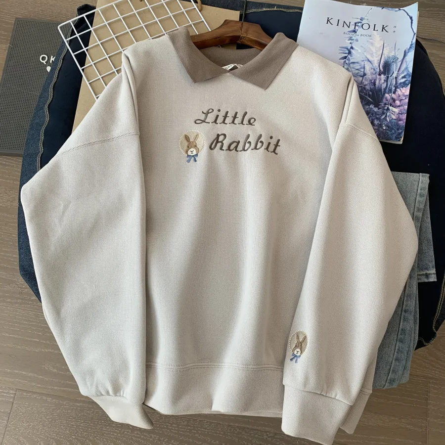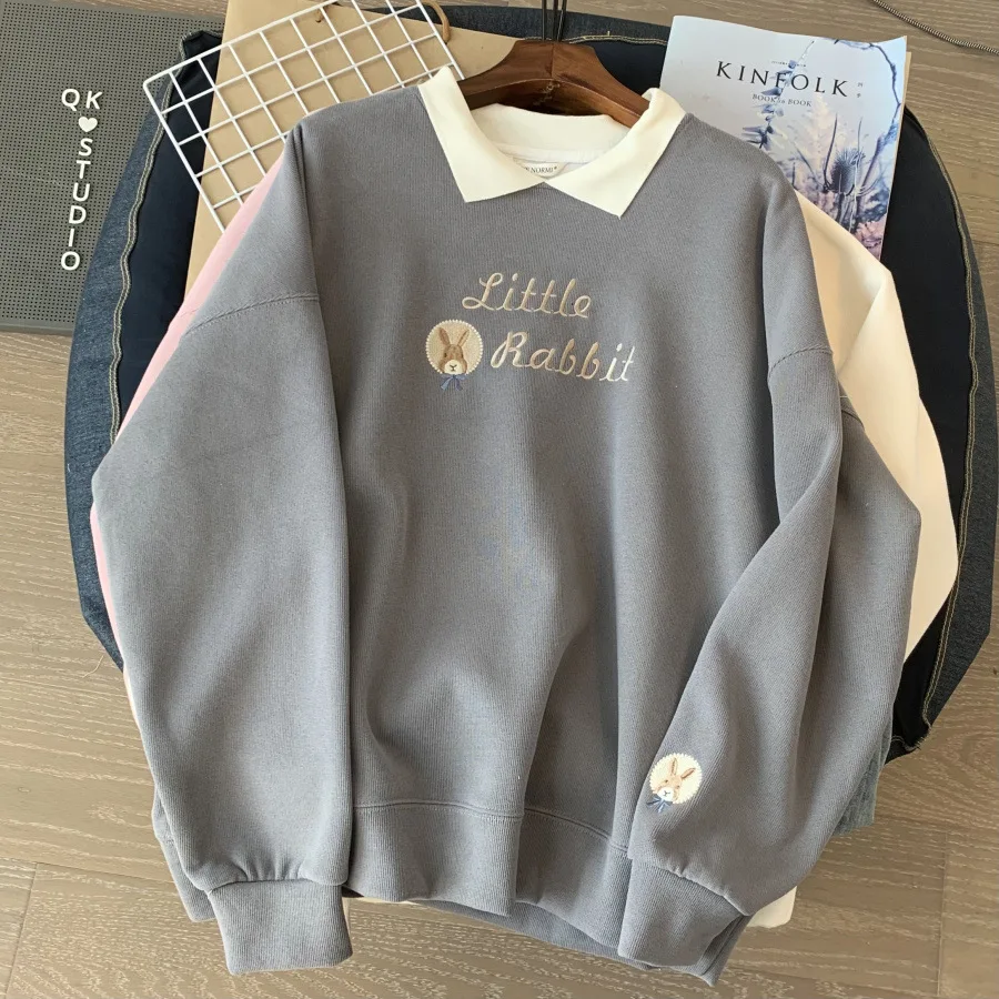 Korean Embroidery Loose Sweatshirts for Women Spring Autumn Trendy Turn-Down Collar Student Pullovers 2023 New Casual Tops