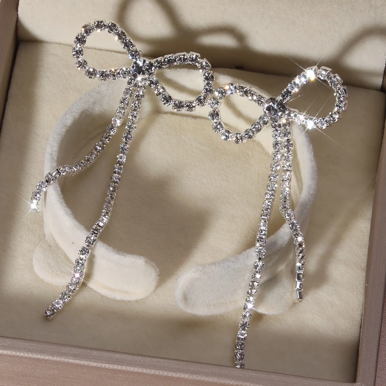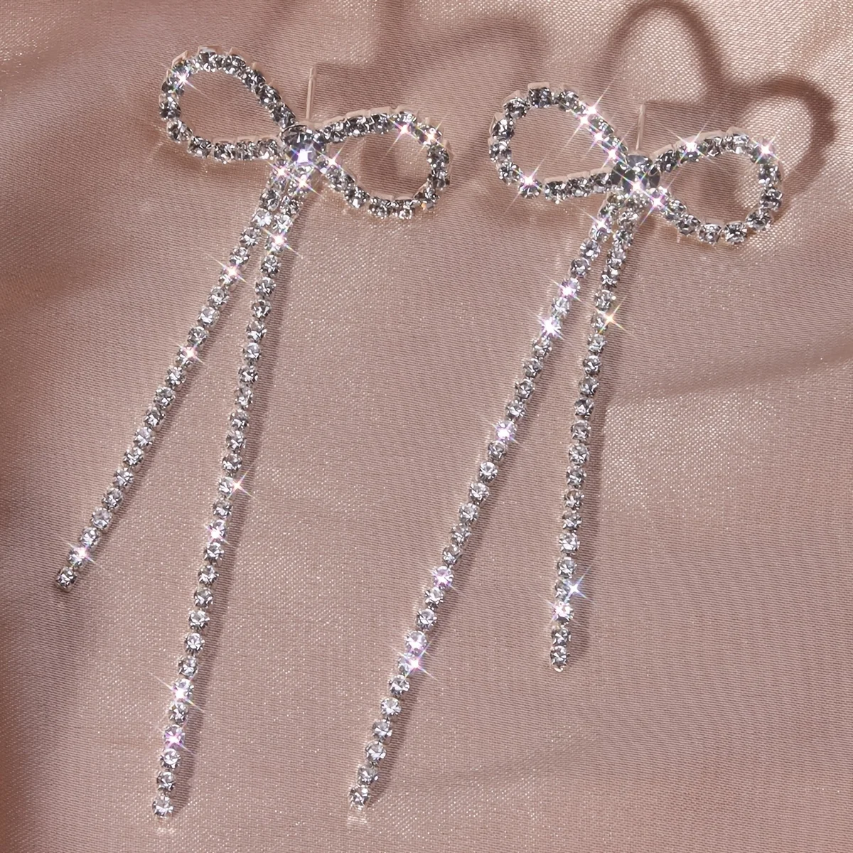 Korean Fashion Bowknot Rhinestones Long Tassel Earrings for Women Silver Plated Ear Wedding Party Anniversary Gift Jewelry Mujer