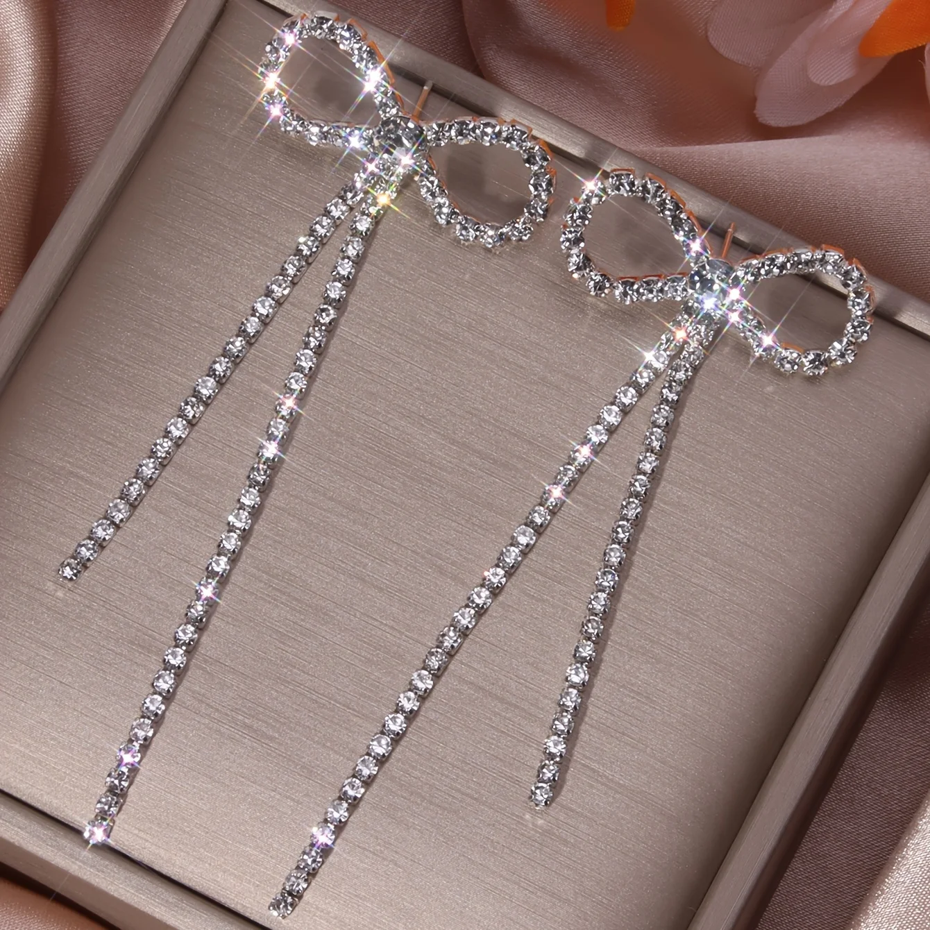 Luxury Fashion Bowknot Rhinestones Long Tassel Earrings for Women Silver Plated Ear Wedding Party Anniversary Gift Jewelry Mujer