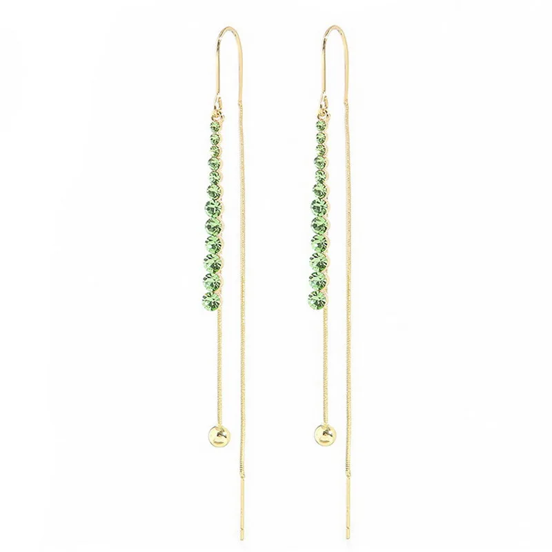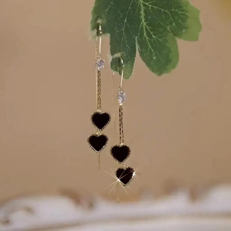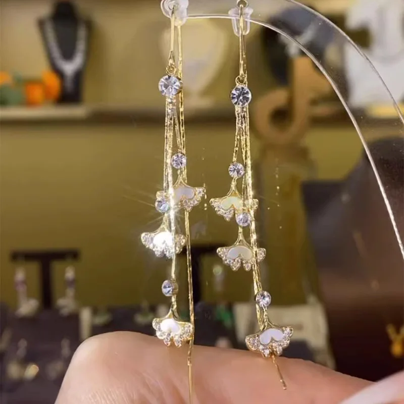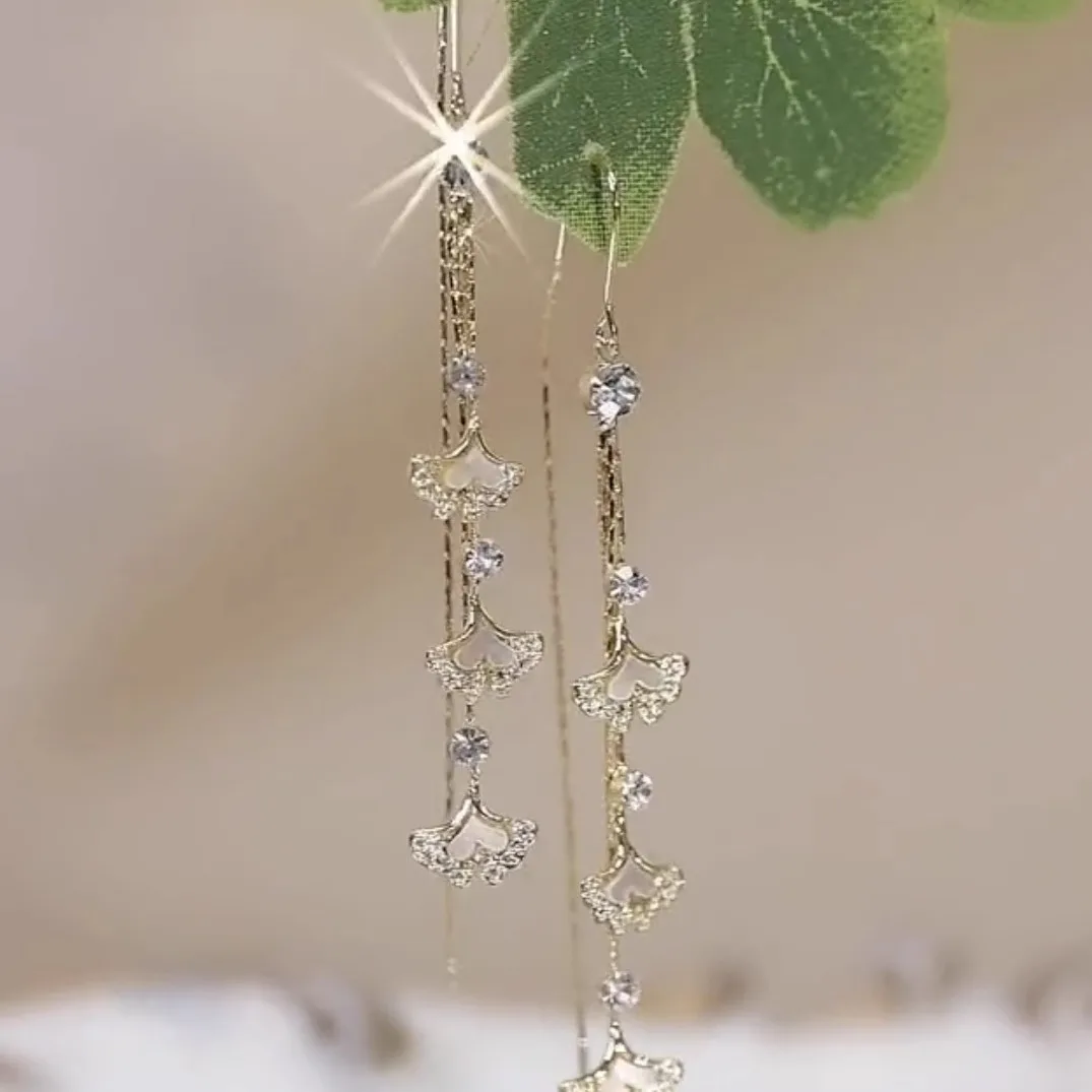 Korean Heart Ginkgo Leaf Long Tassel Earrings for Women Delicate Opal Rhinestone Leaves Hanging Earring Girls Party Jewelry Gift