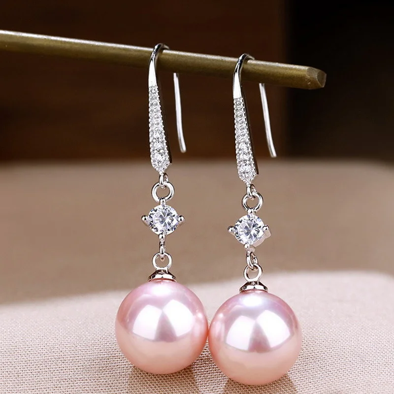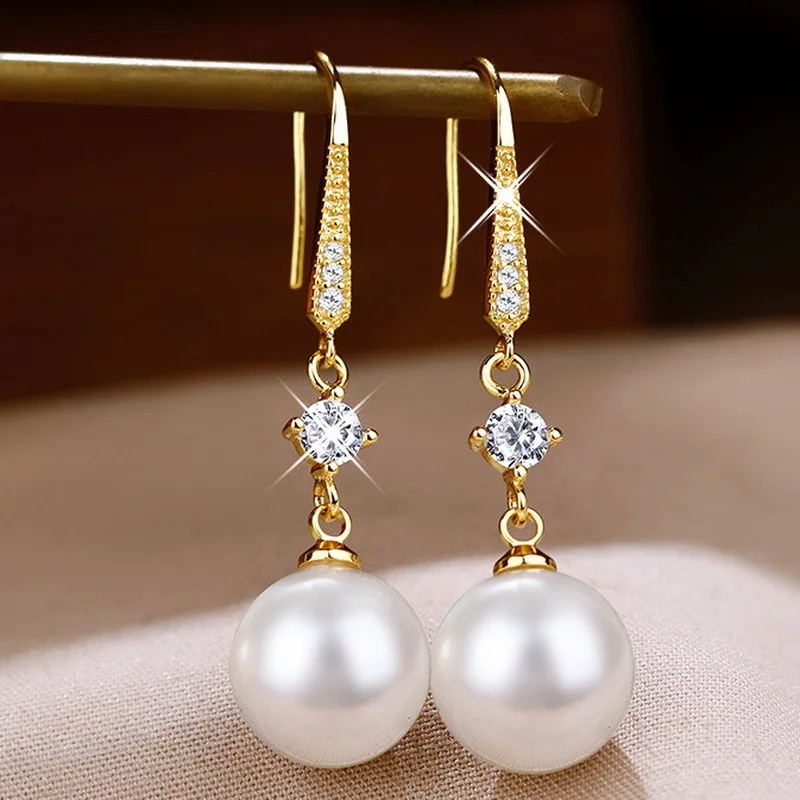 Korean Luxury Zircon Pearl Dangle Earrings for Women Temperament Long Drop Earrings Bridal Engagement Wedding Party Jewelry Gift