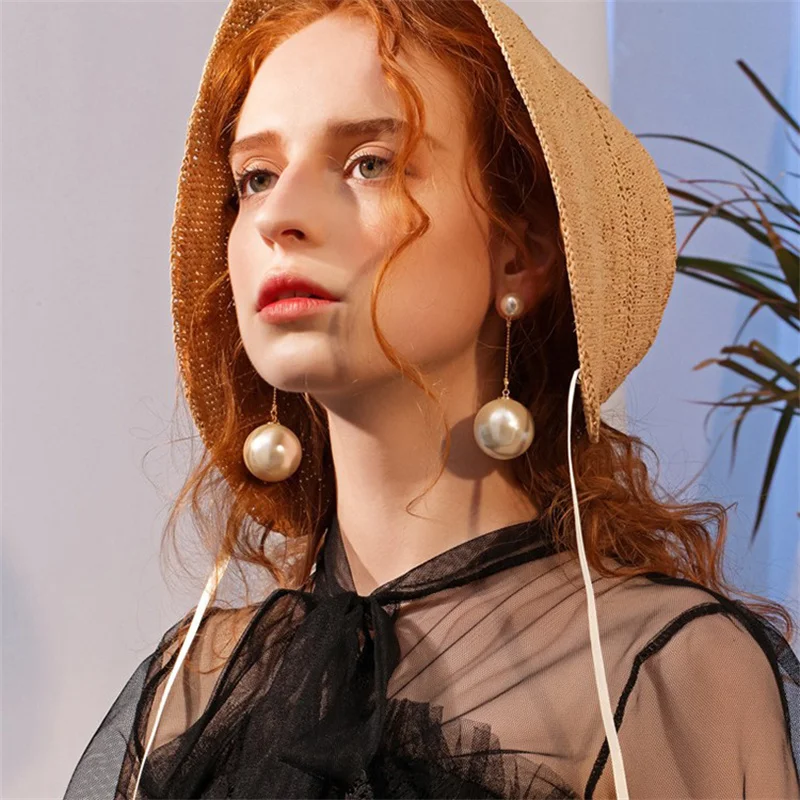 Korean Nightclub Style Imitation Large Pearl Earrings Retro Exaggerated Pearl Drop Earring For Women Party Jewelry