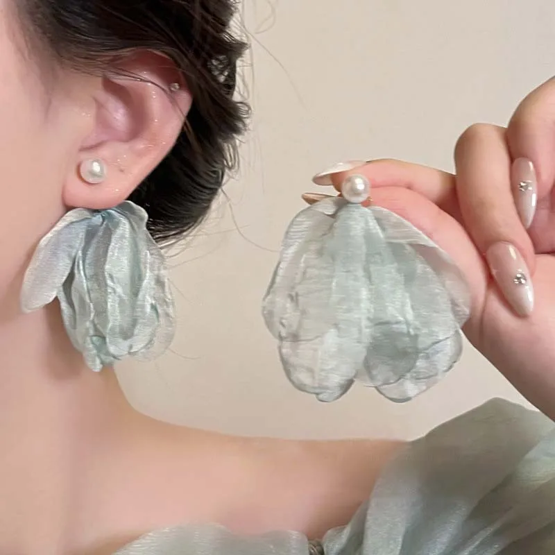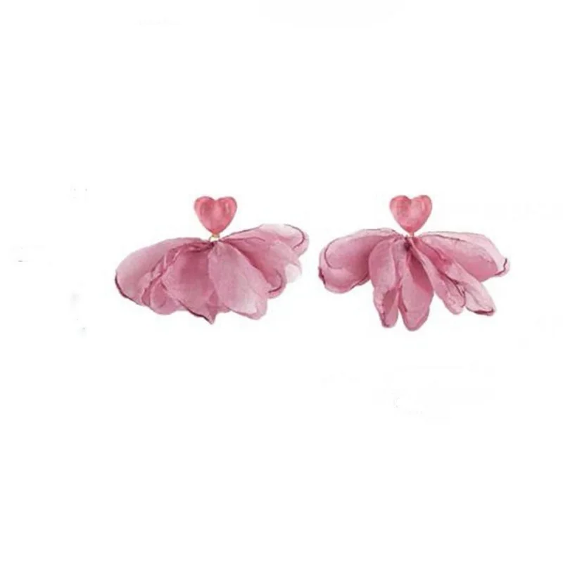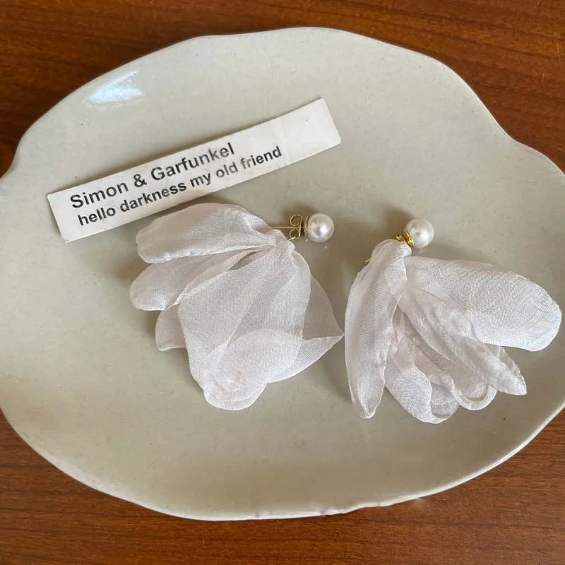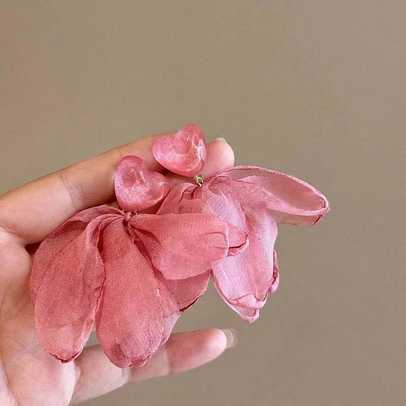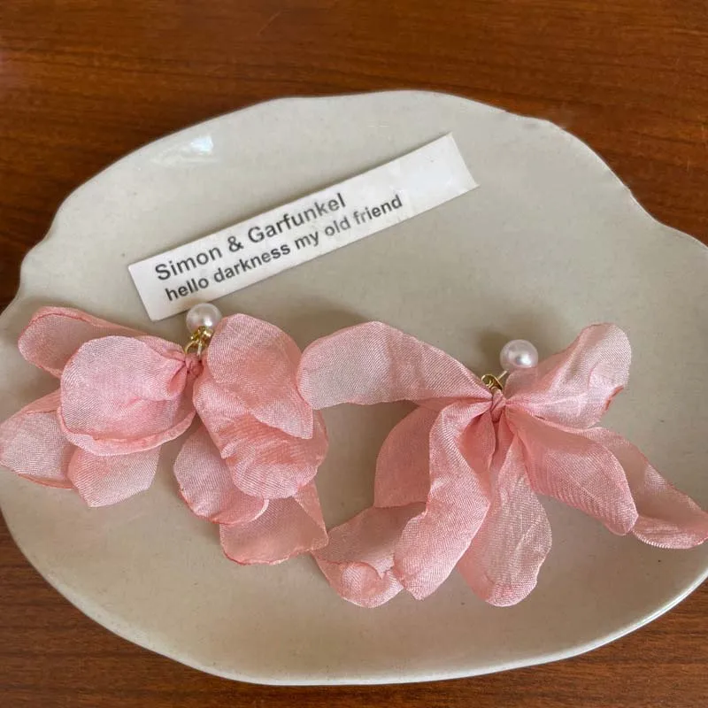 Korean Pink Lace Flower Pearl Tassel Earrings For Women Girls Sweet Petal Long Dangle Earrings Jewelry Accessories Bijoux