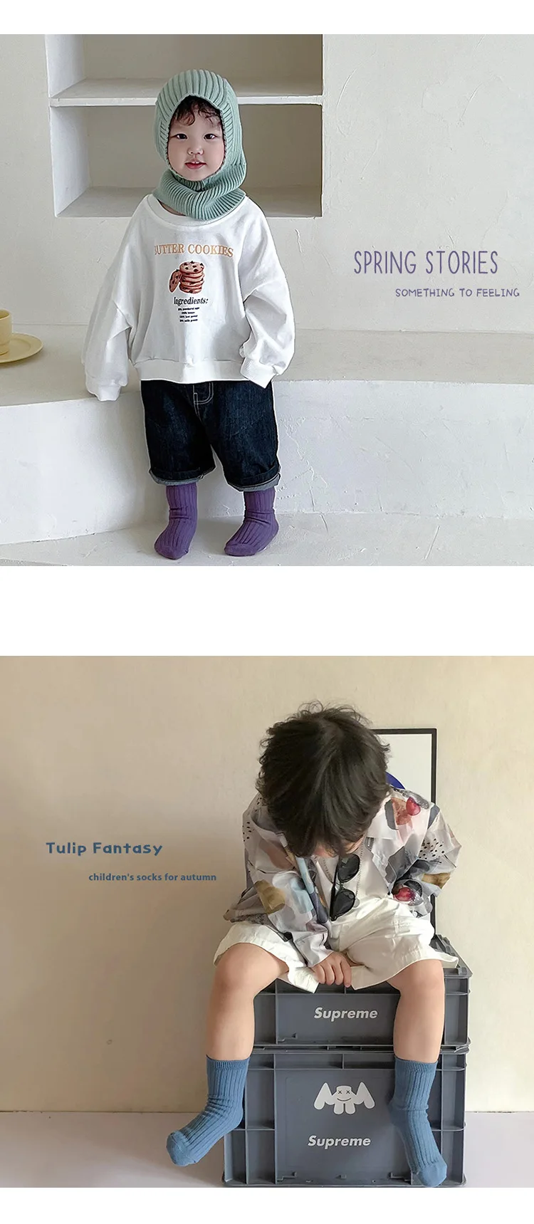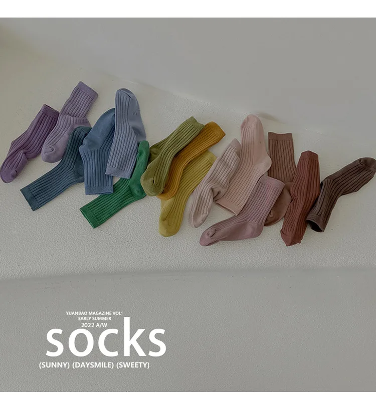 Korean Style Candy Color Children Socks For Kids Winter Warm Cotton Solid Baby Sock Cute Jacquard Weave Boy Girl Sock New 1-12Y