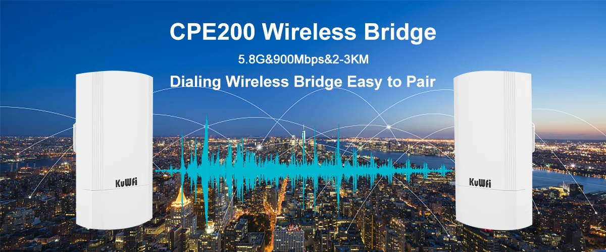 KuWFi 5.8G 900Mbps CPE Bridge Outdoor Wireless Wi-Fi Signal Extender 18dBi Antenna AP Repeater PTP Up to 8KM Gigabit Port IP65