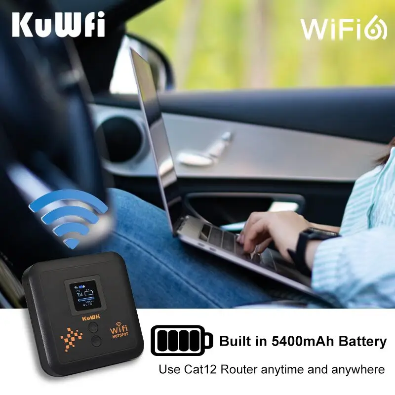 KuWFi 5400mAh 4g Mobile Wifi Router Dual band AX1200 2.4g 5.8g Pocket Wifi Cat 12 eSim Router With Sim Card Slot Support 32 User