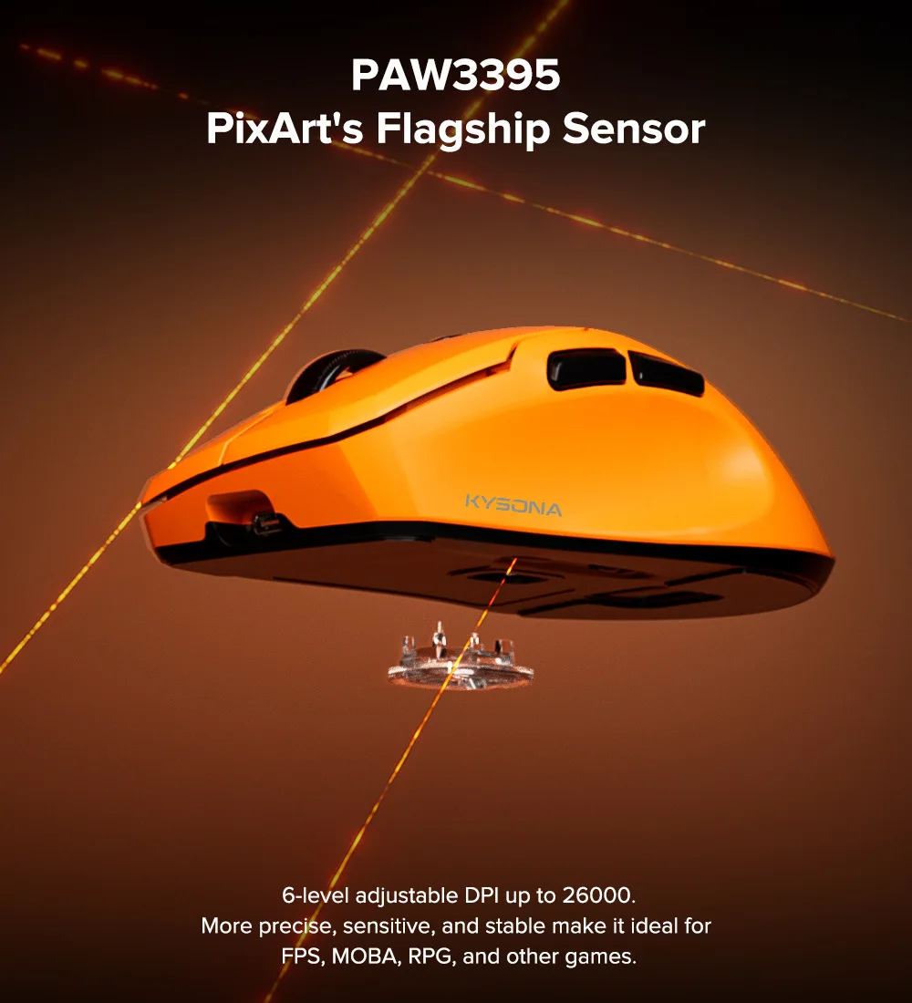 KYSONA Uranus Pro Wireless Mouse Three Mode PAW3395 Ergonomic Design Lightweight 8k E-sports Gamer Mouse Laptop Accessories