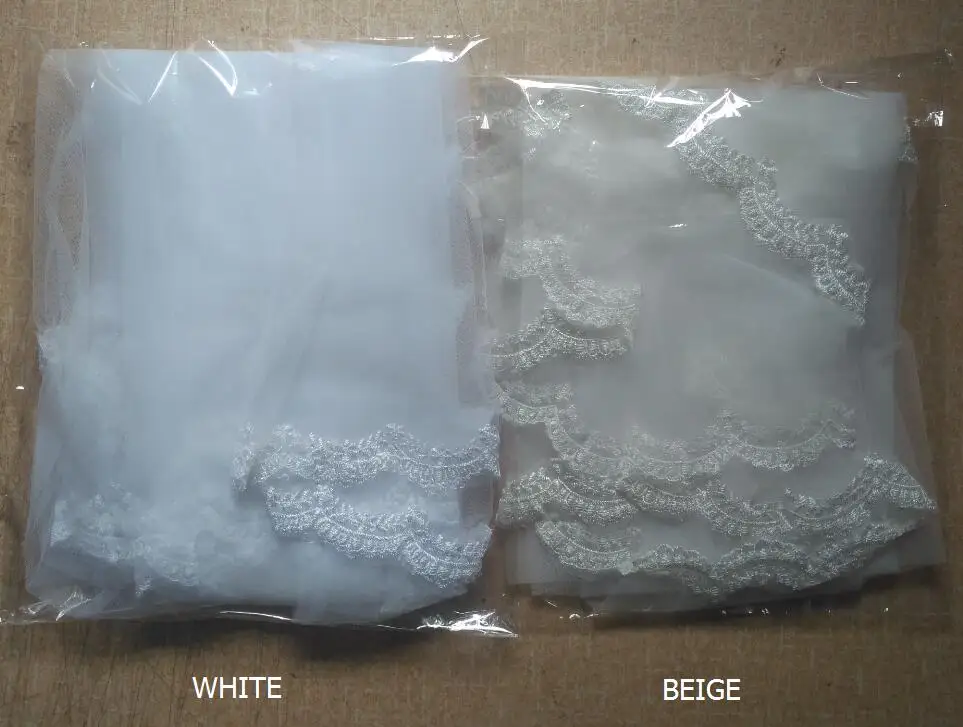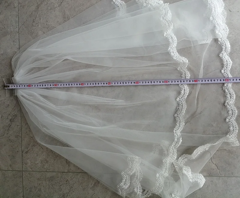 Kyunovia 2 Tier Bridal Veil Beautiful White Cathedral Short Wedding Veils Lace Edge With Comb Bride Veils A00187