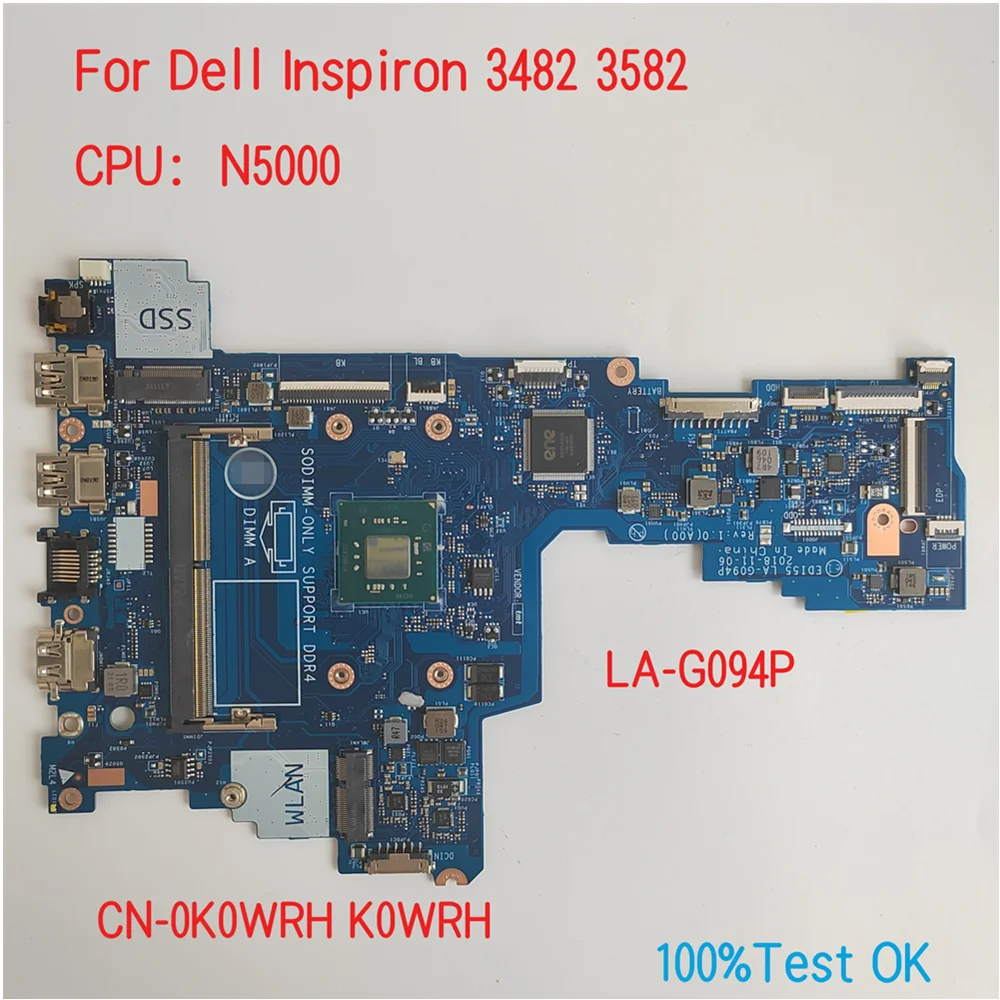 LA-G094P For Dell Inspiron 3482 3582 Laptop Motherboard CPU N5000 CN-0K0WRH K0WRH 100%Test OK