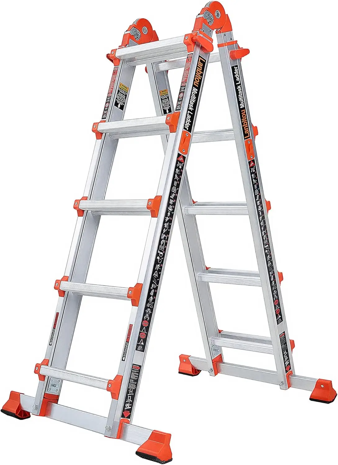 Safety Multi Position Ladder: This Folding Ladder Can Be Easily Converted Into An A Frame Ladder, Stairs Ladder ,Extension Ladder, Can Be Quickly Configured To Many Different Shapes To Meet Different Height Requirements And Work Scene Needs, Make Household Chore Such As Repairing Roofs , Home Appliance Maintenance, Window Cleaning, Warehouse Job, Tree Trimming And So On Become Safer And Easier