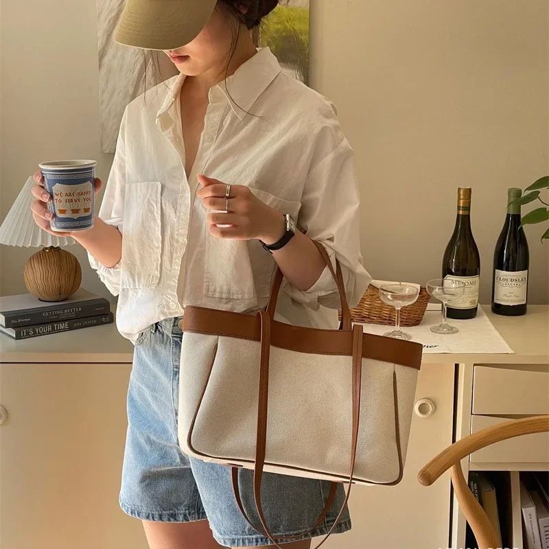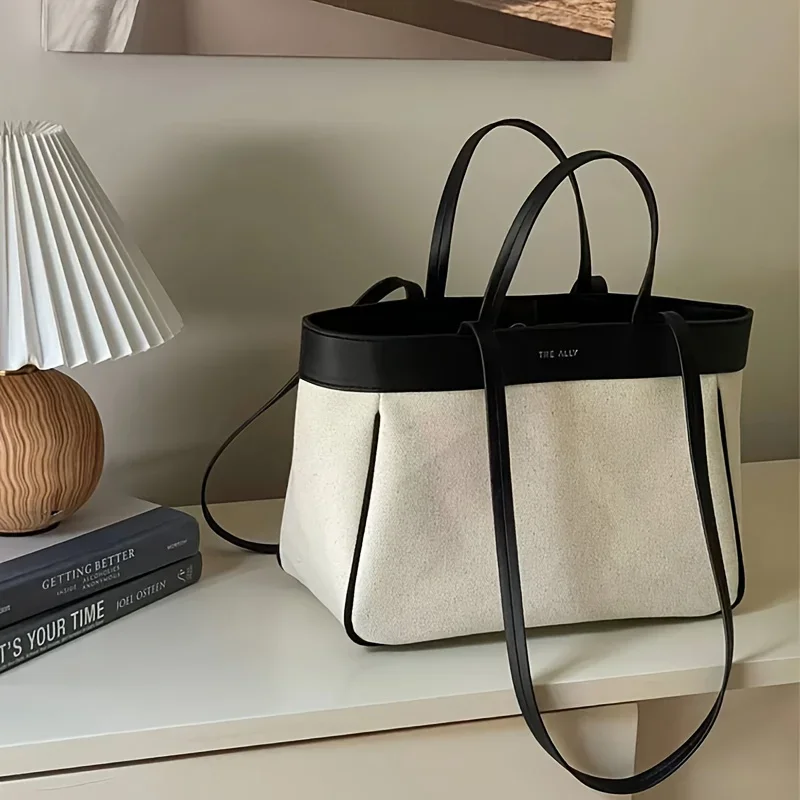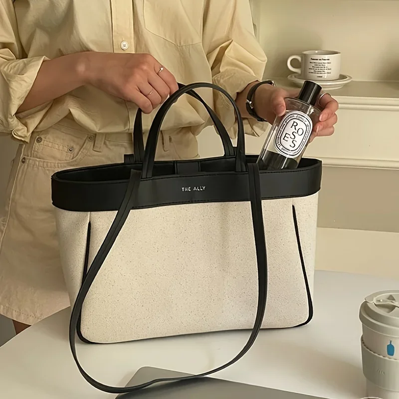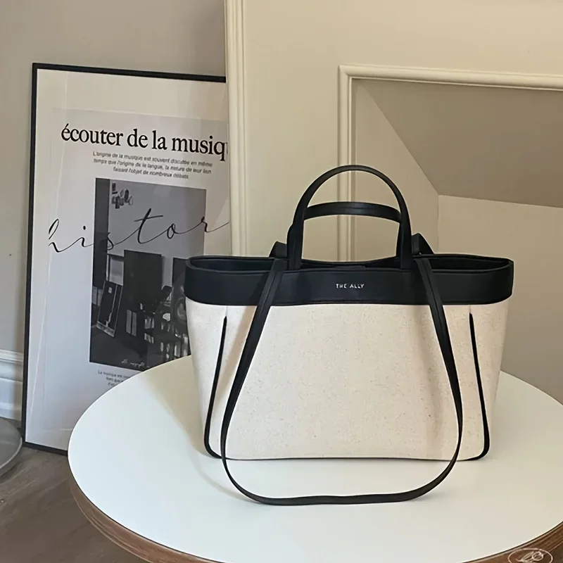 Ladies Casual Canvas Shoulder Bag – Solid Color Handbag, Adjustable Shoulder Strap, Zipper Closure, Polyester Lined –