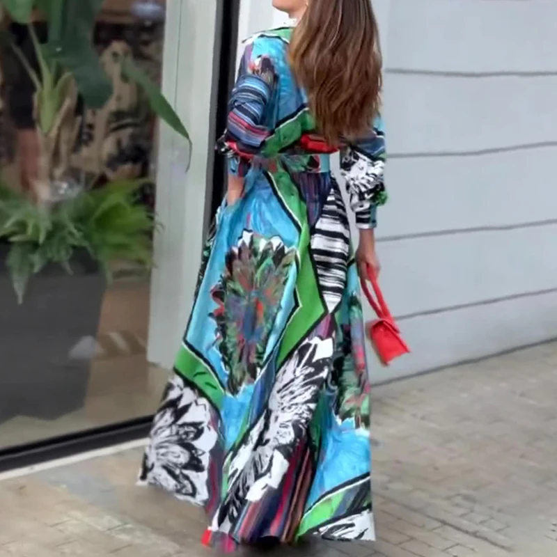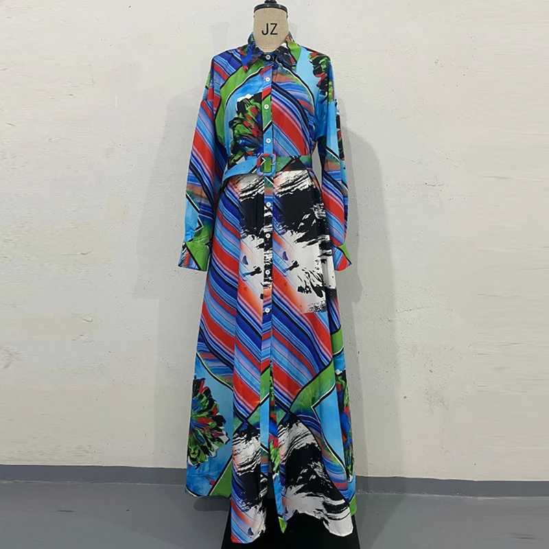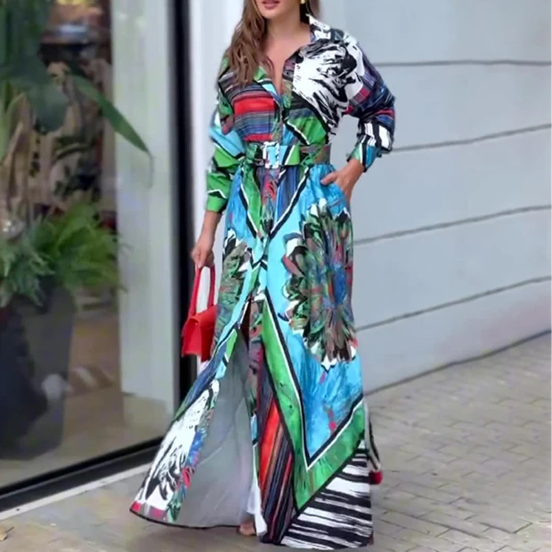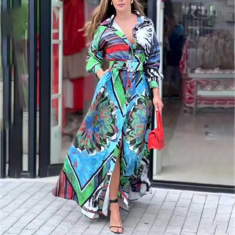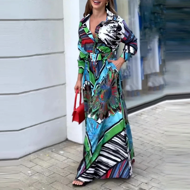 Ladies Fashion Single Breasted Shirts Dress Temperament Spring Lapel Graphic Office Dress Elegant Women Long Sleeve Party Dress