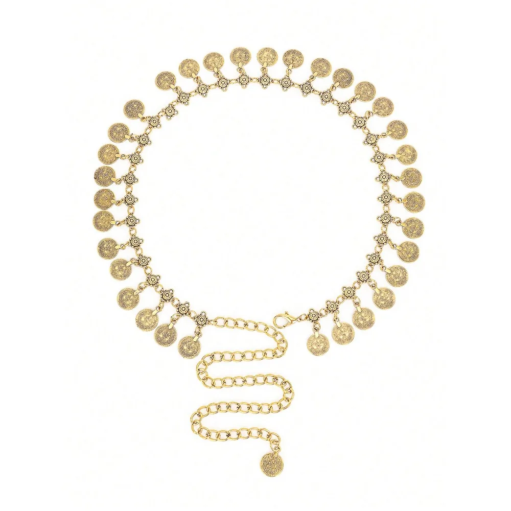 Ladies’ Metal Waist Chain Thin Decorative Belt For Dress, Belly Dance Gold-Color