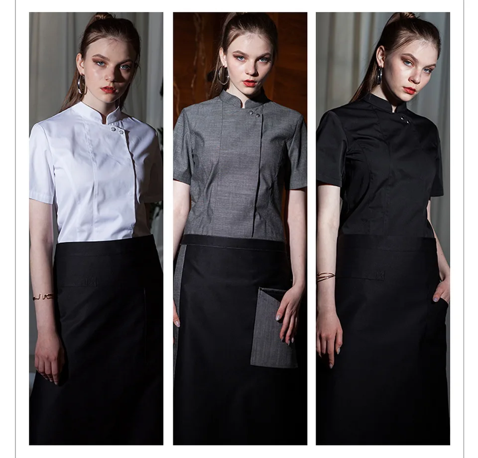 ladies restaurant uniforms shirts Restaurant Cooking coat Hotel Chef Kitchen Uniform summer Catering Cafe Sushi Waiter Workwear