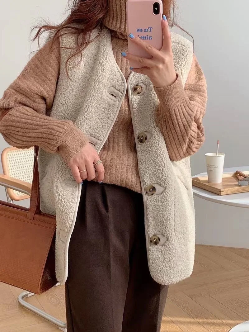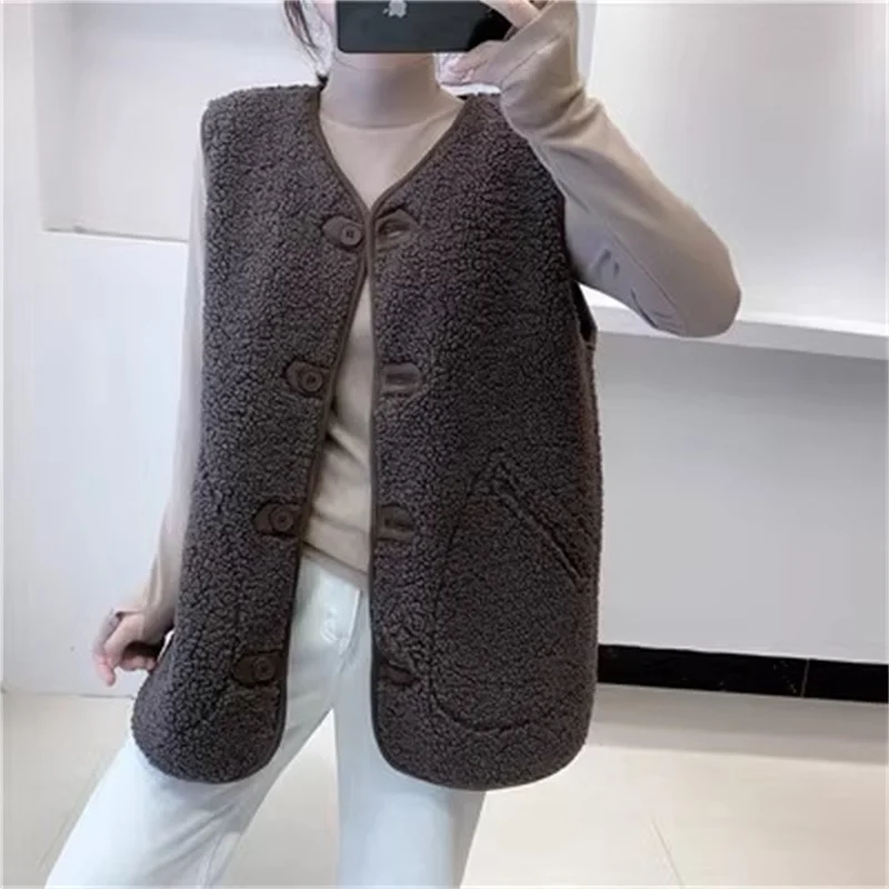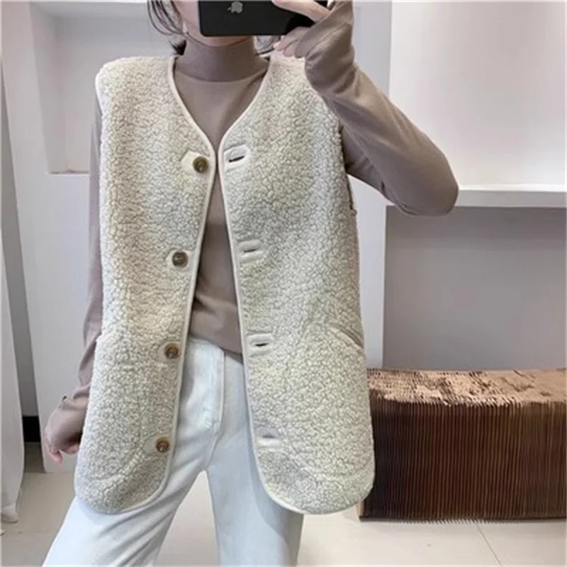 Lamb Hair Vest Jacket Women Autumn and Winter 2024 New Fur Integrated Waistcoat Loose Sleeveless Waistcoat Outerwear Wear Lady