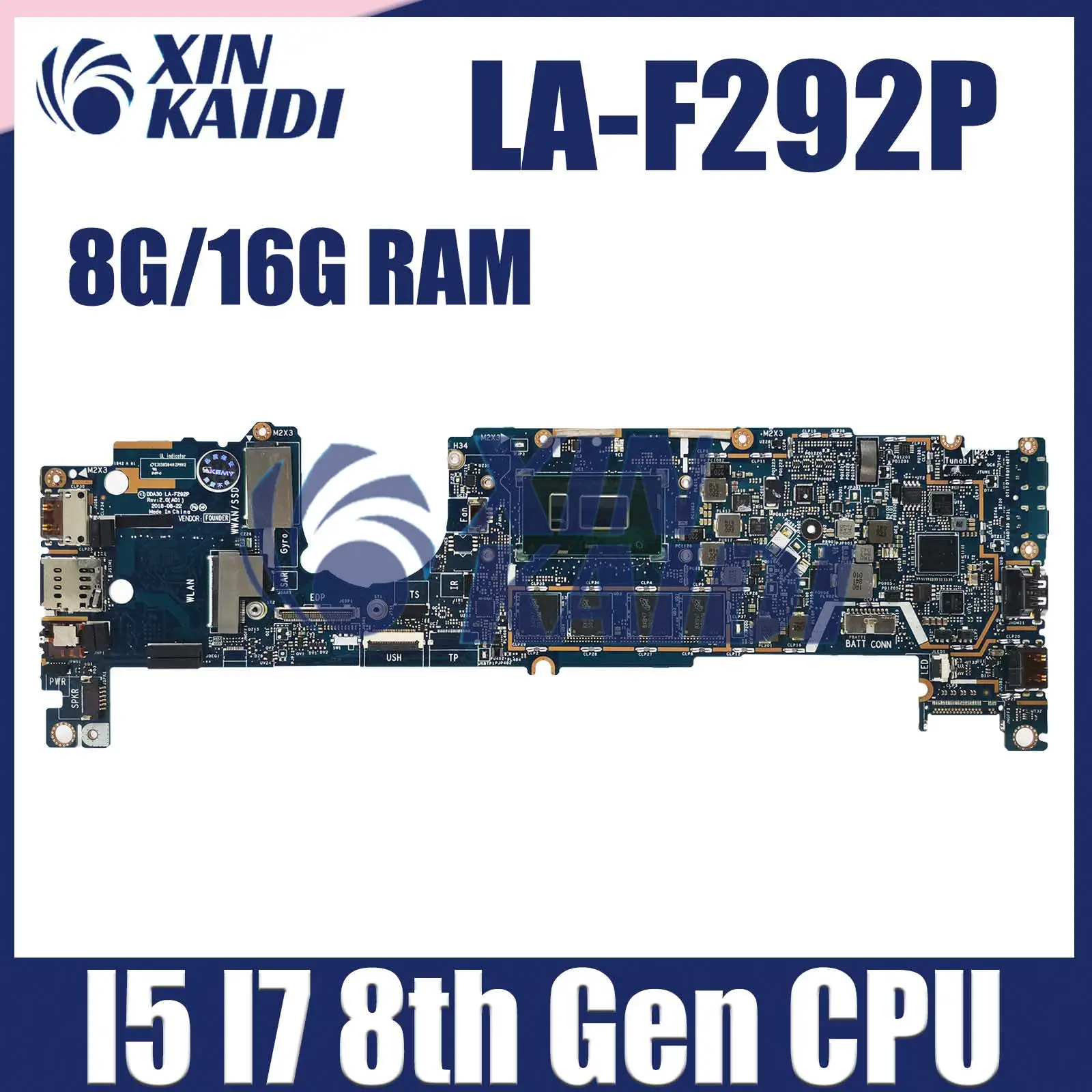 Laptop Motherboard For Dell Latitude 7390 02WCVJ 041M0M 0CM3RM LA-F292P Notebook Mainboard i5 i7 8th Gen CPU RAM 8G 16G