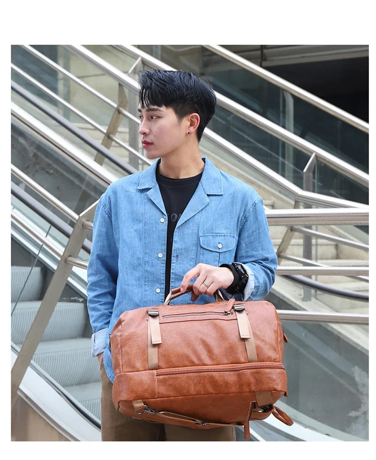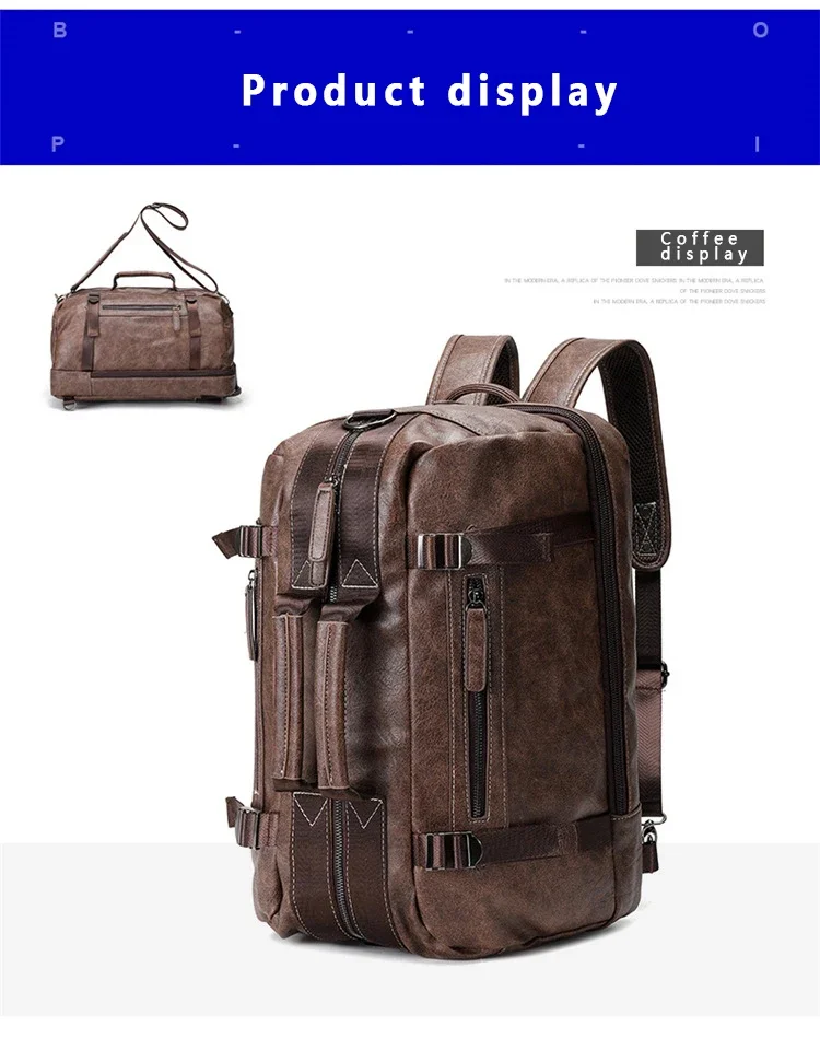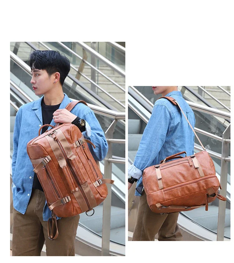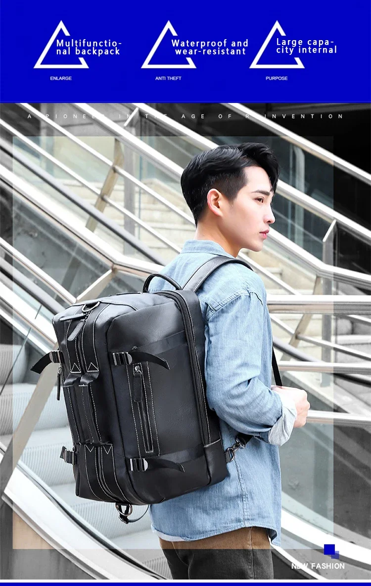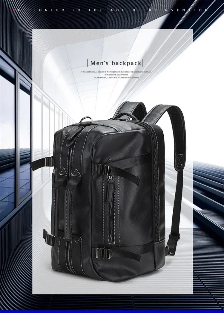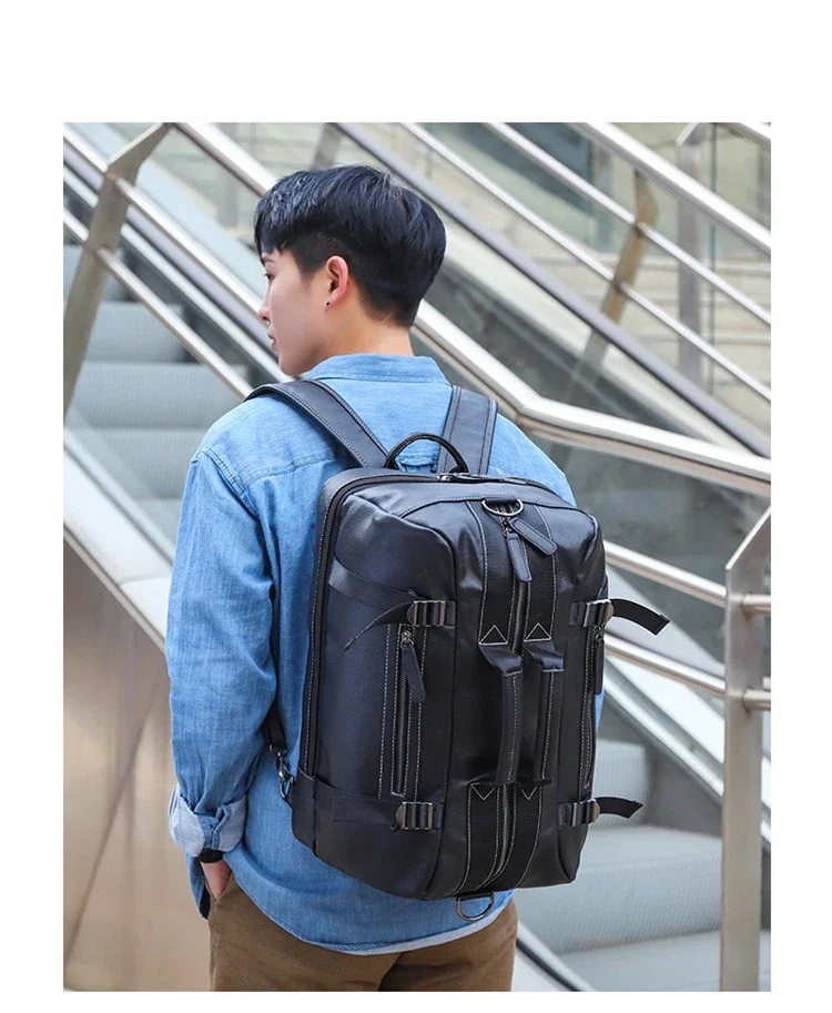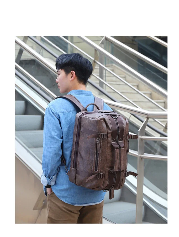 Large Capacity Business Trip Back Pack Men Luxury Brand PU Leather Backpack Men Vintage Travel Laptop Waterproof Multi Pocket