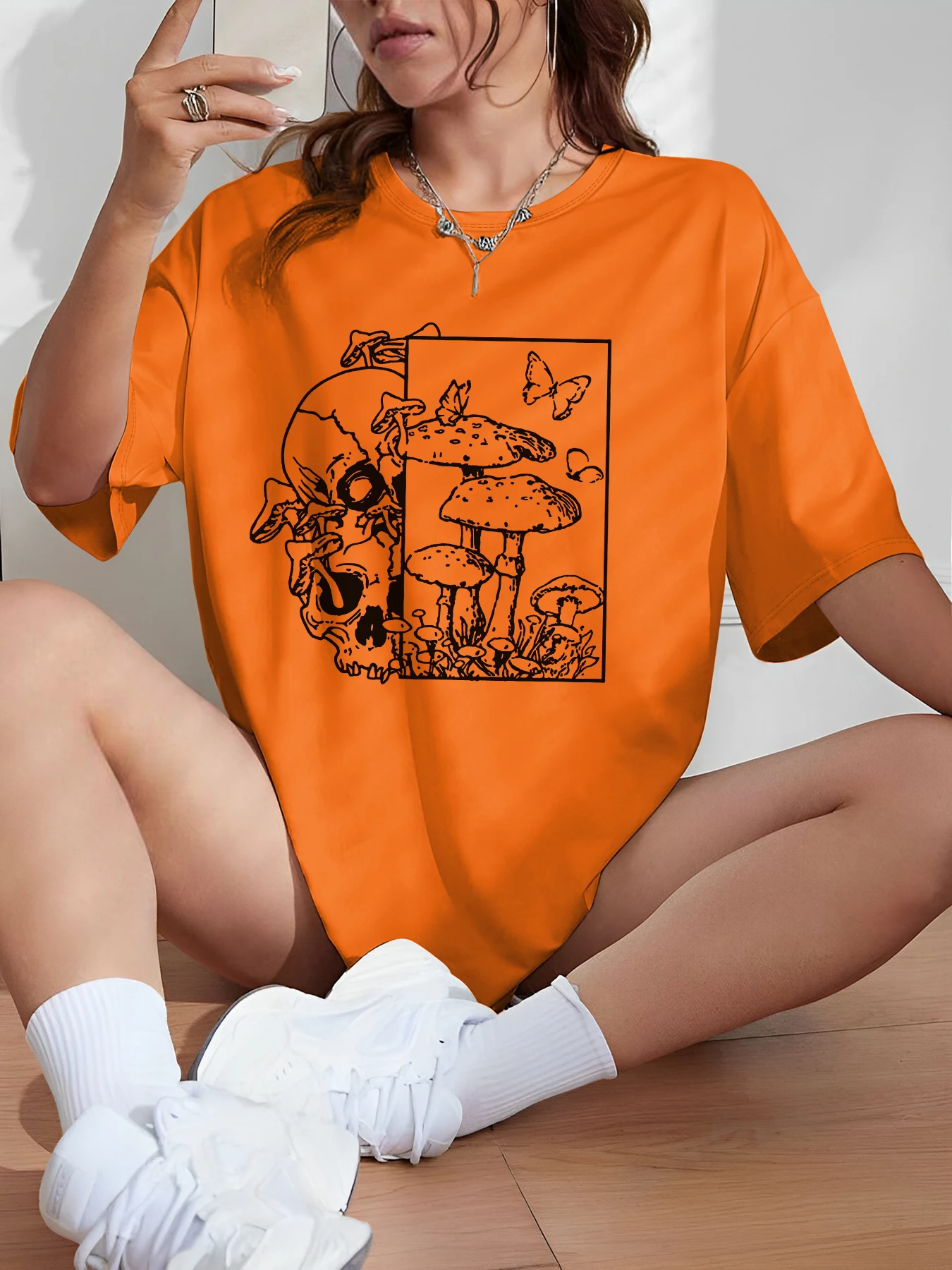 Large Size Spring and Summer Round Neck Short Sleeve Fashion Printed T-Shirt for Women