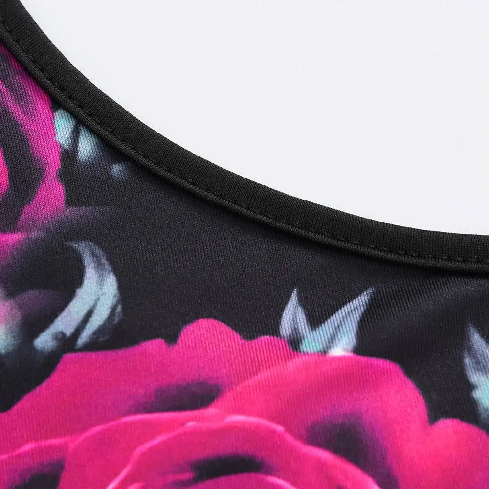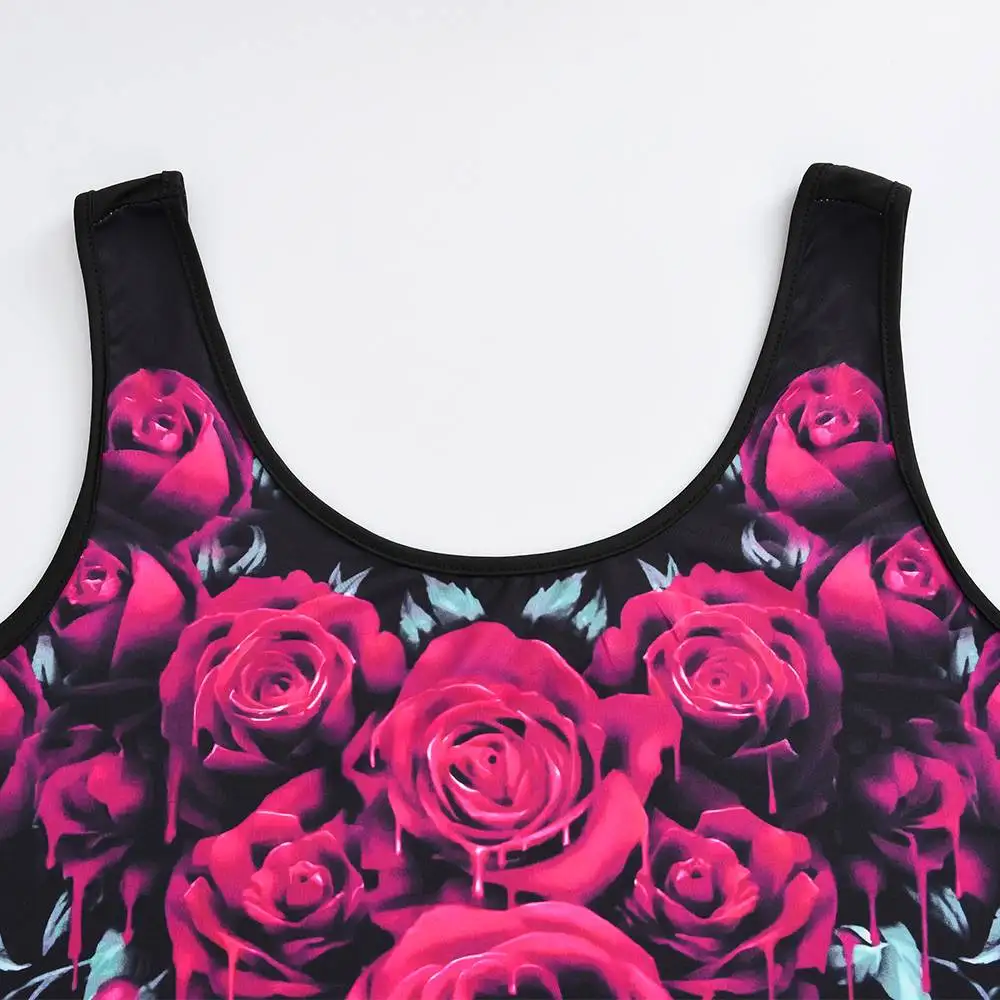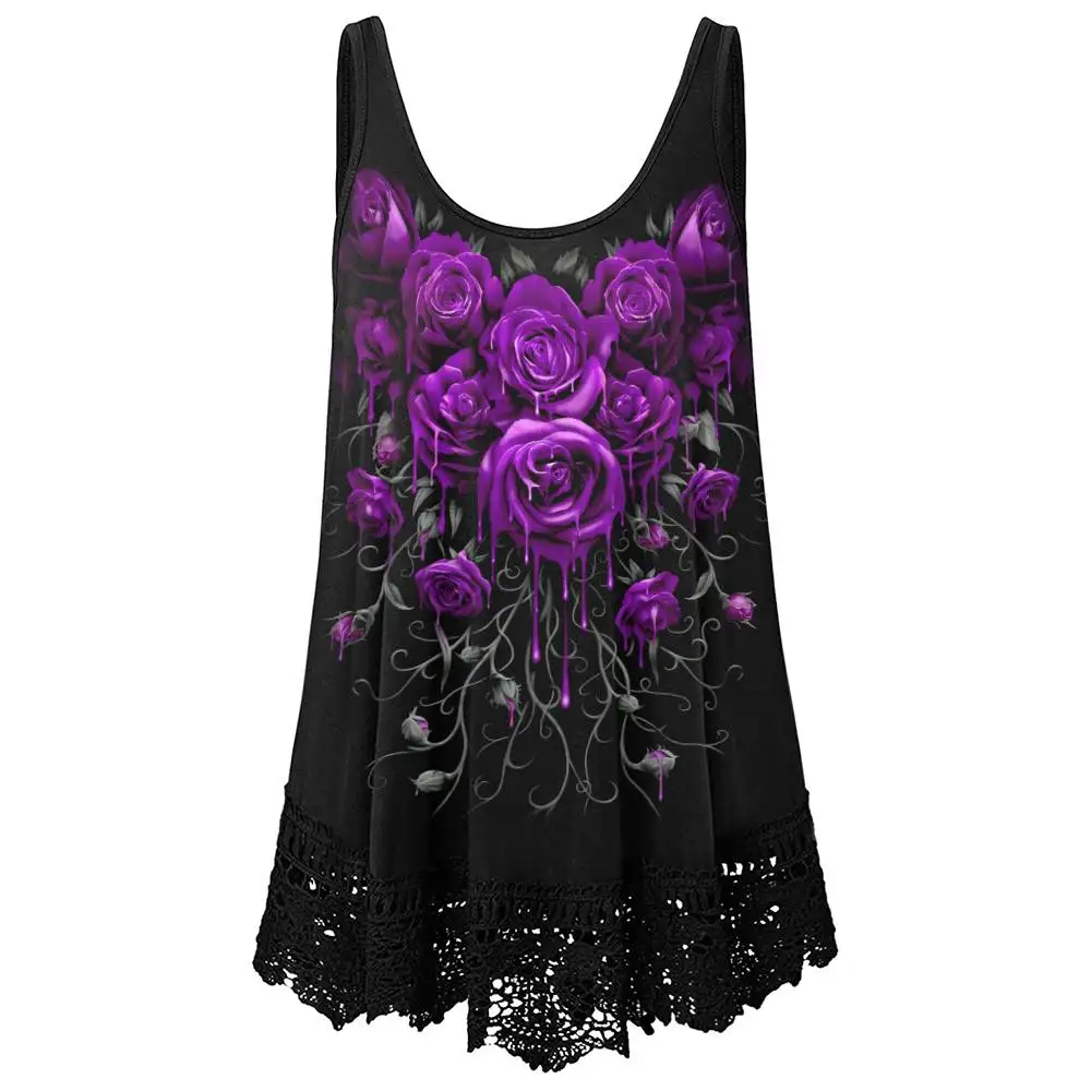 Scoop neck,Sleeveless,Gorgeous lace hem, Rose printed,Basic and