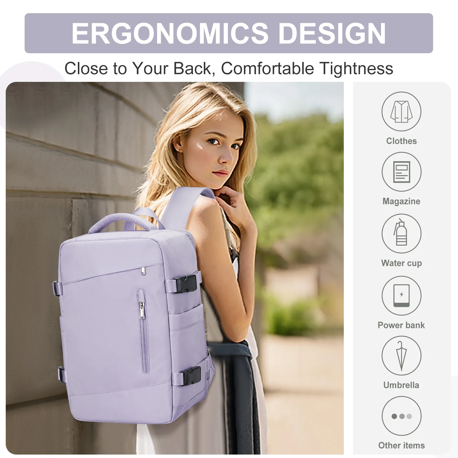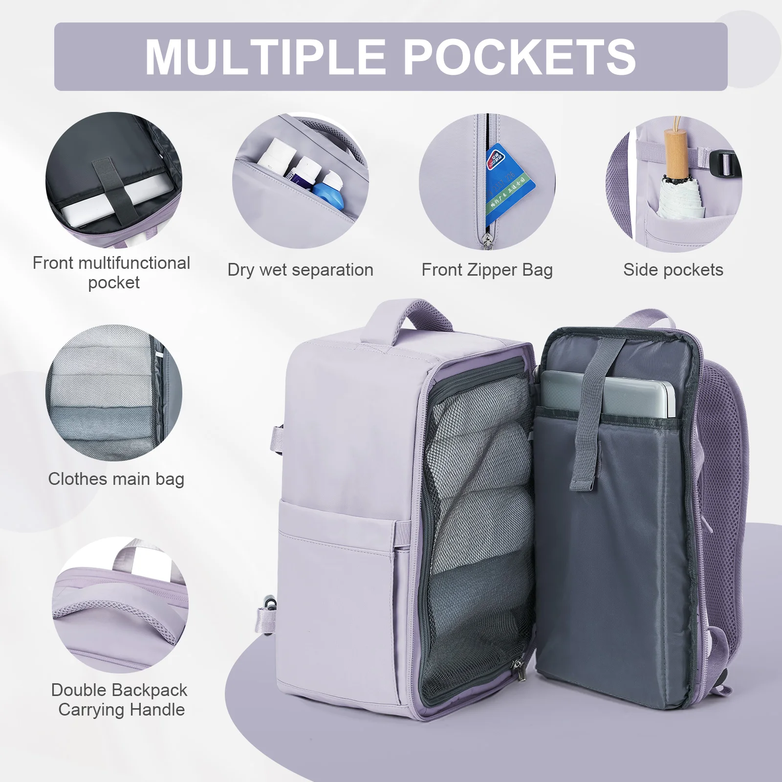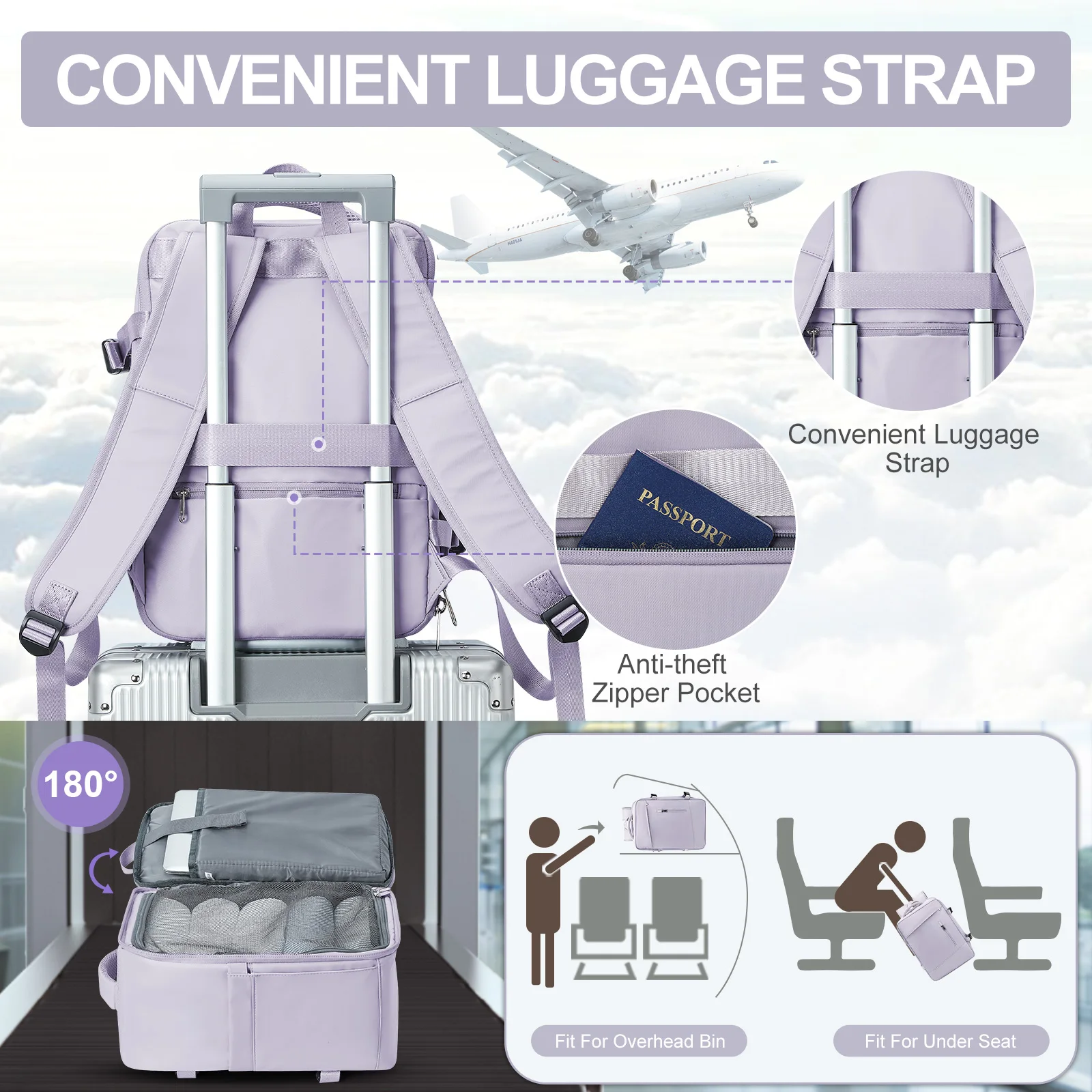 Large Travel Backpack for Women Men, Carry on Flight Approved 14 inch Laptop Work Business Backpack, Waterproof Business Daypack