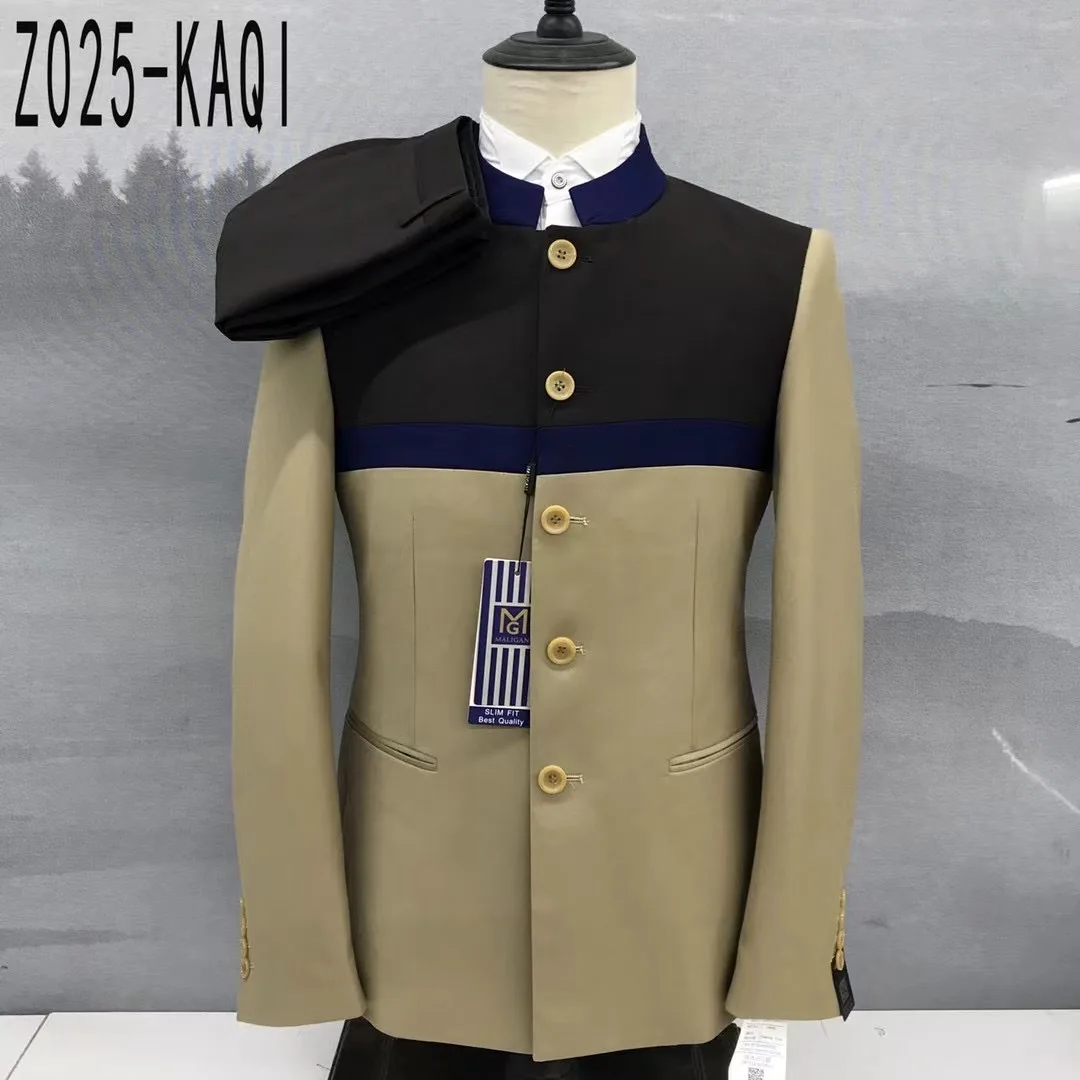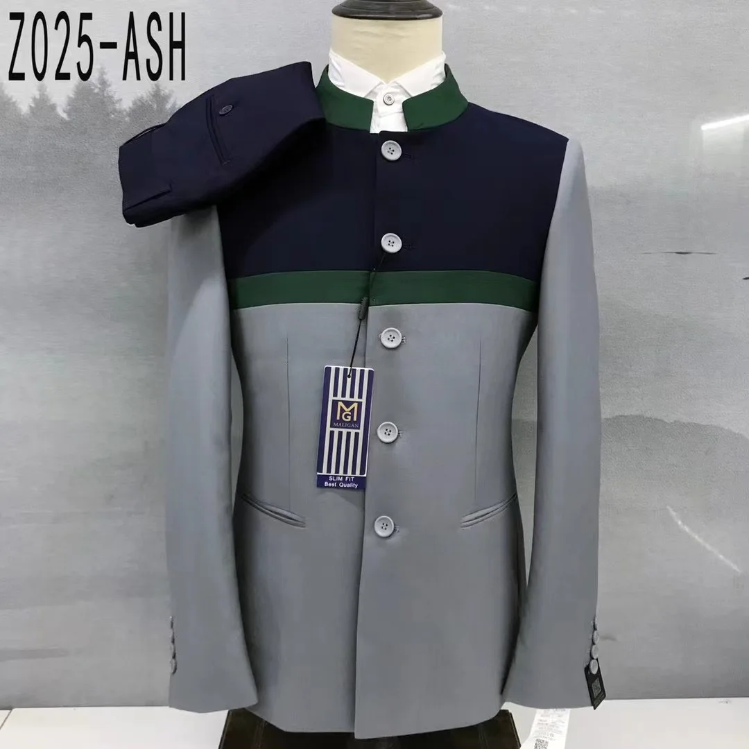 Latest Royal Blue Suits for Men 2 Pieces Slim Fit Fashion Chinese Tunic Suit Wedding Blazer Pants Set Luxury Tuxedos for Men