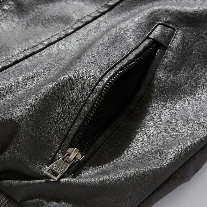 Leather Jacket Men Winter Fleece Original Moto & Biker Embroidery Removable Fur Collar Windbreaker Ropa De Hombre Slim Coat