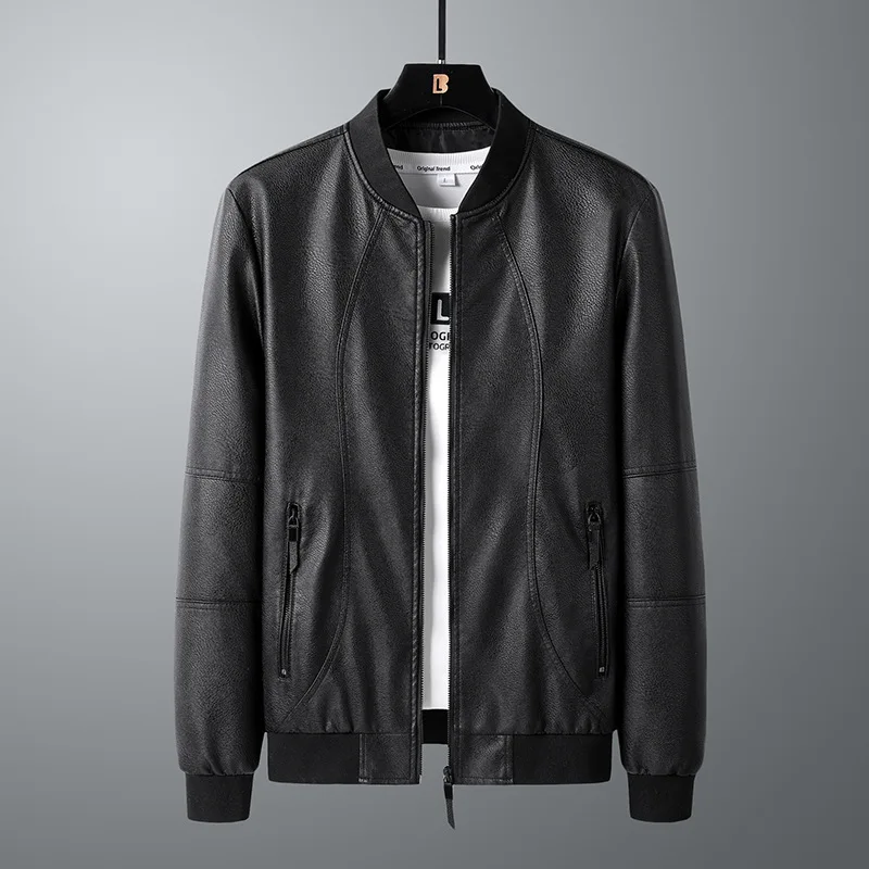 Leather Jacket Men’s 2021 Autumn Wear New Men’s Casual PU Leather Jacket Slimming Fashion Trend Handsome Standing Collar Leather