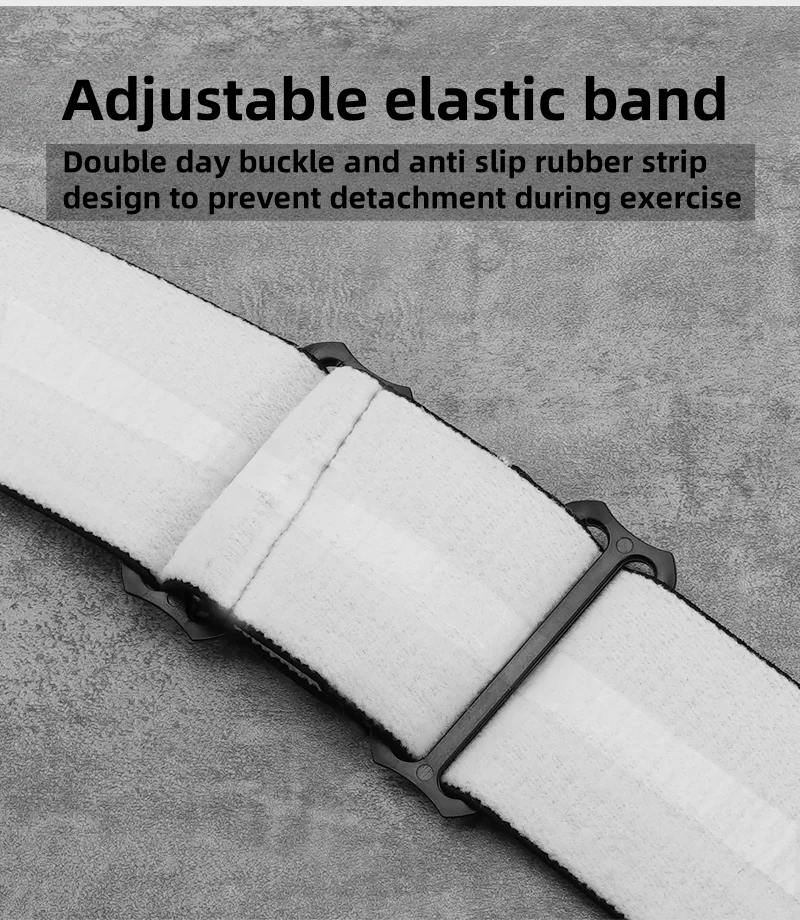 Adjustable elastic bandDouble day buckle and anti slip rubber stripdesign to prevent detachment during exercise