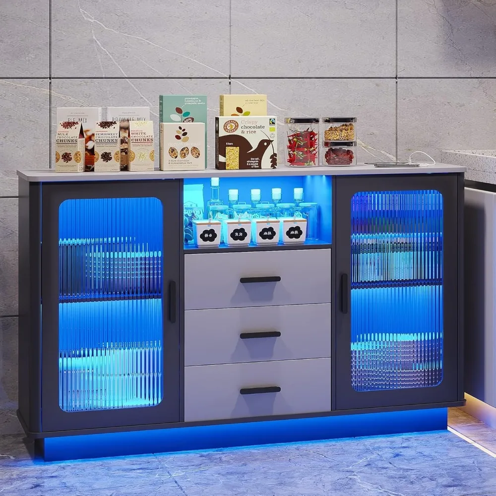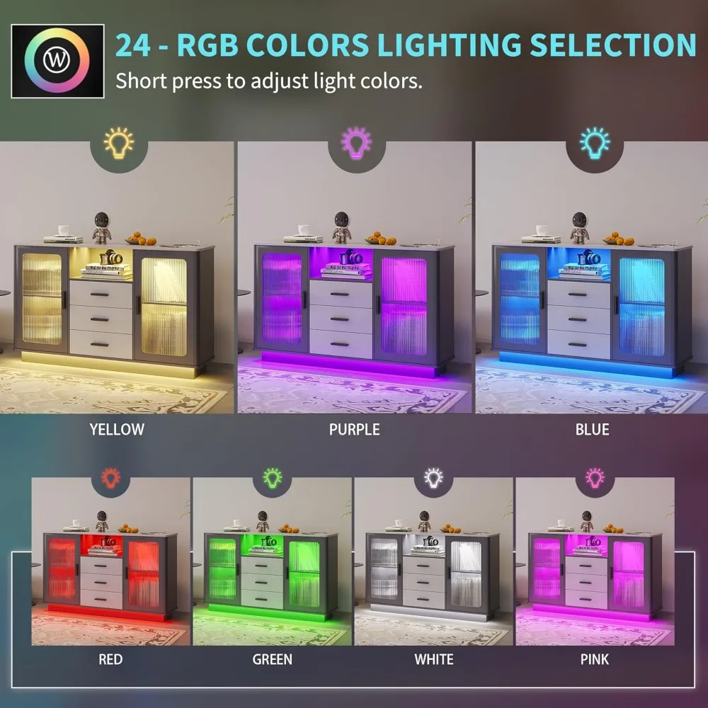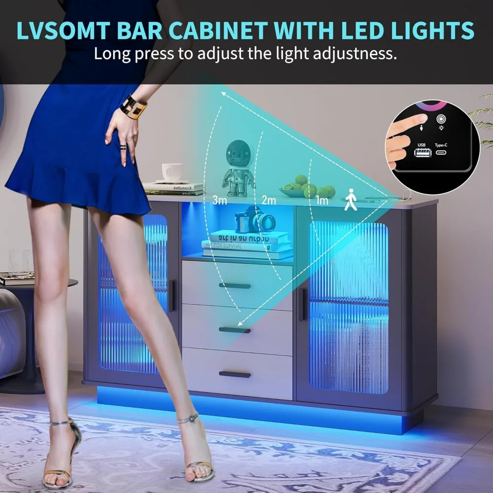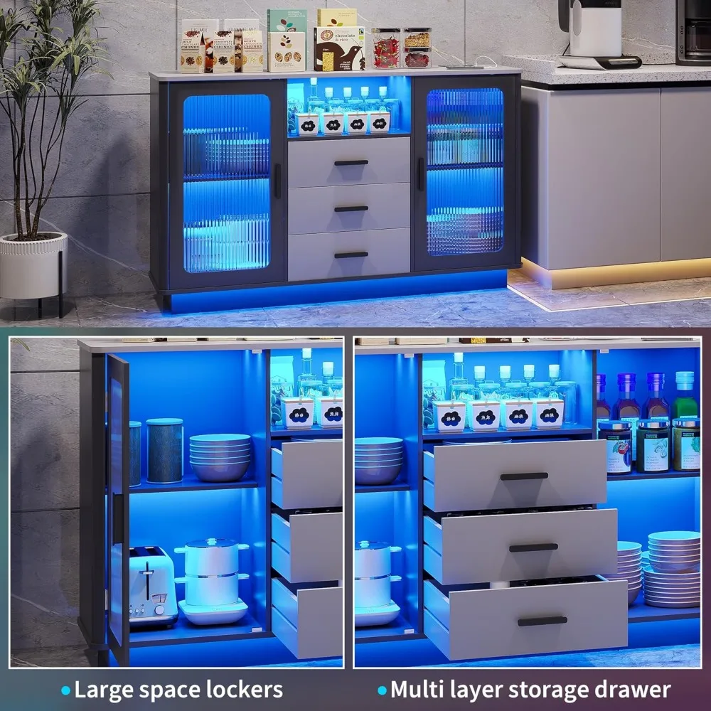 LED Coffee Bars with 24 Colors Lighting, Modern Coffee Station with Motion Sensor, Kitchen Buffer Sideboard with Storage Cabinet