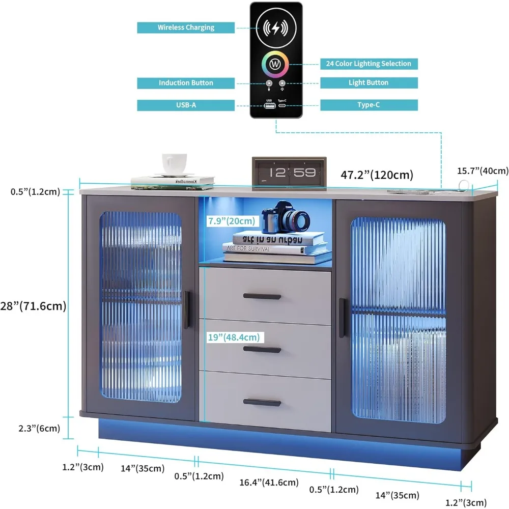 Elevate your Home Bar Experience – Featuring 24 light modes, motion sensor, and 3-meter motion sensor. Also offers a 3-in-1 charging mode: USB-A, Type-C, and wireless charging