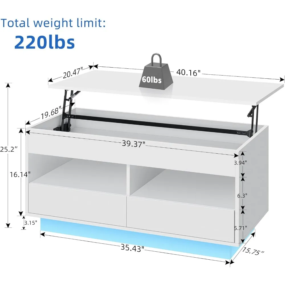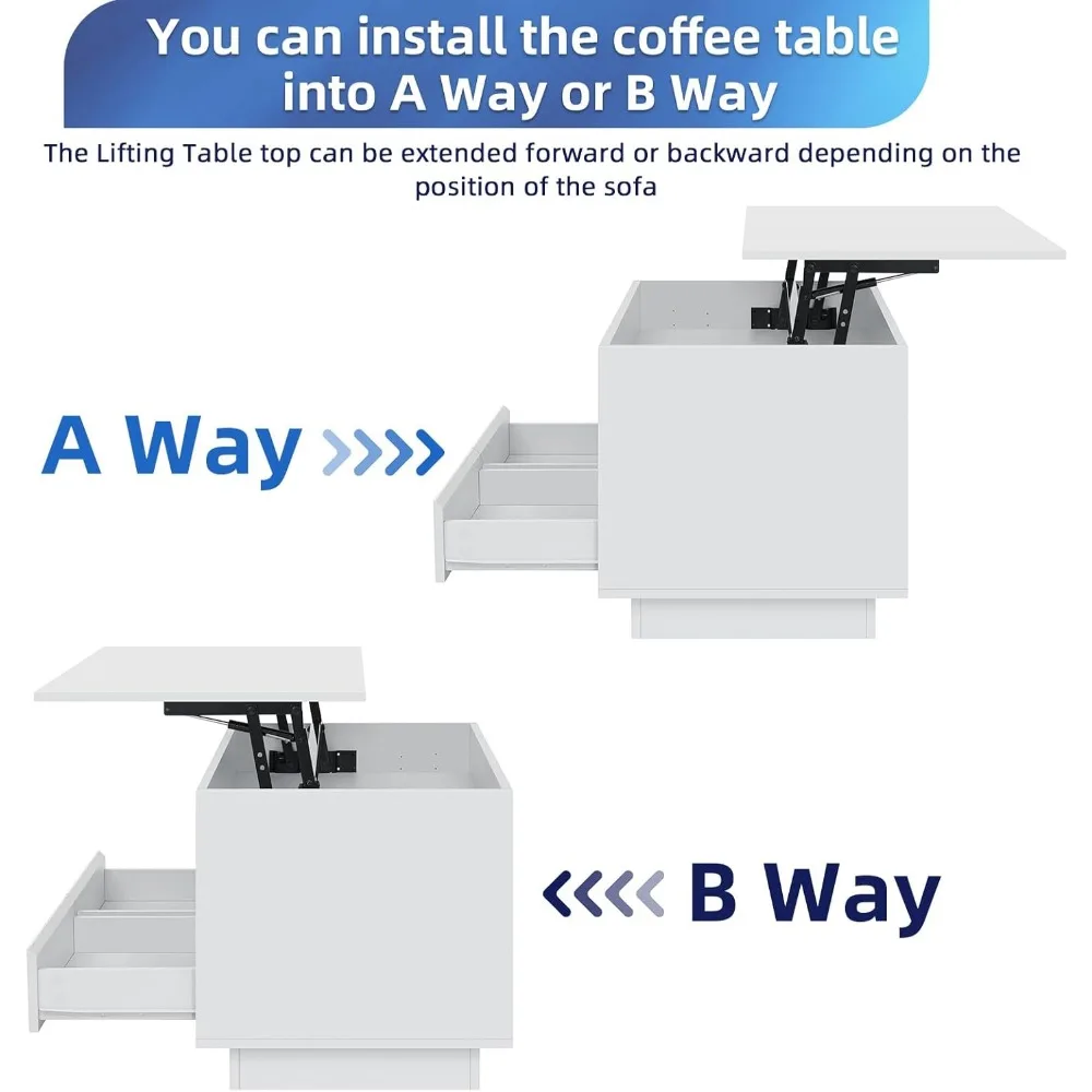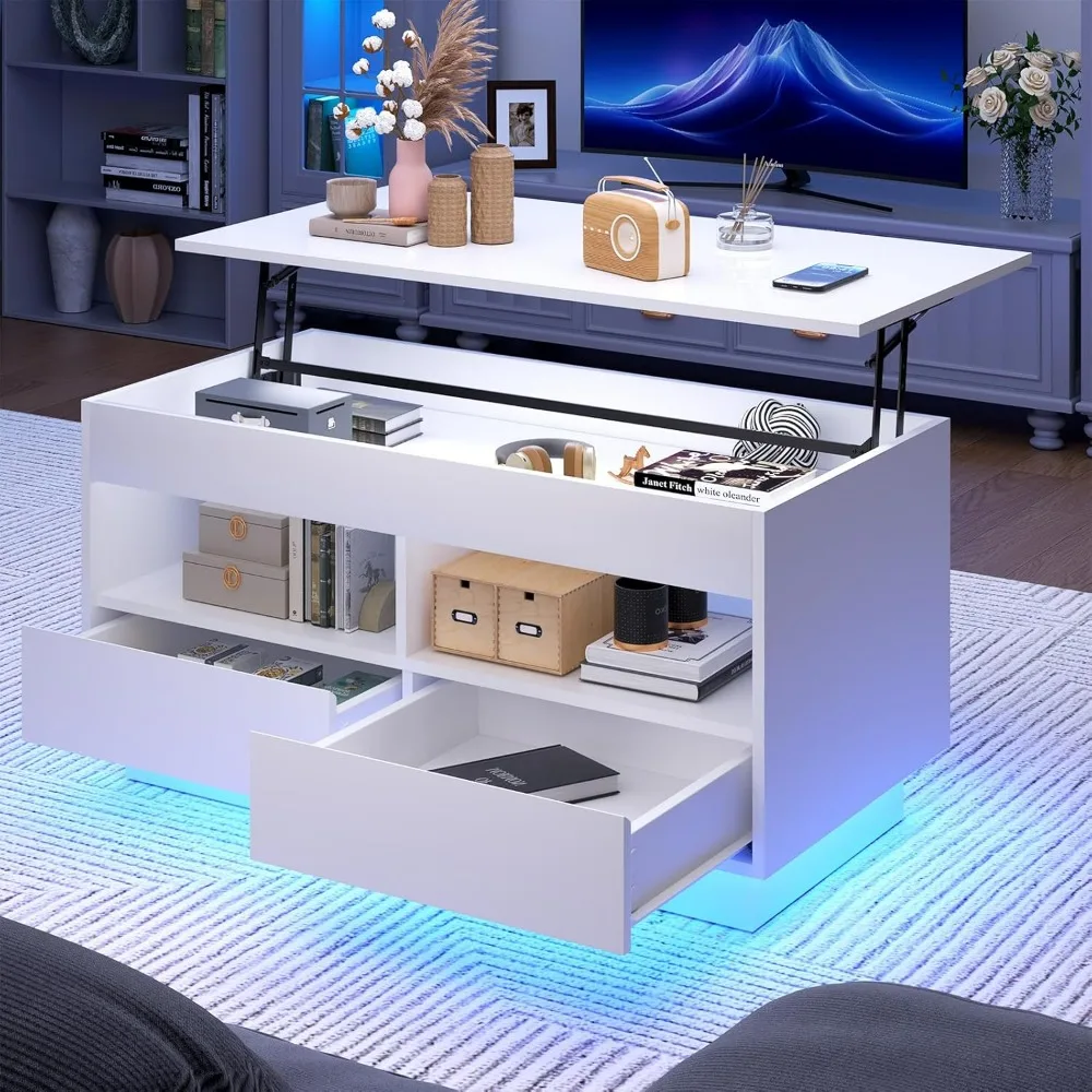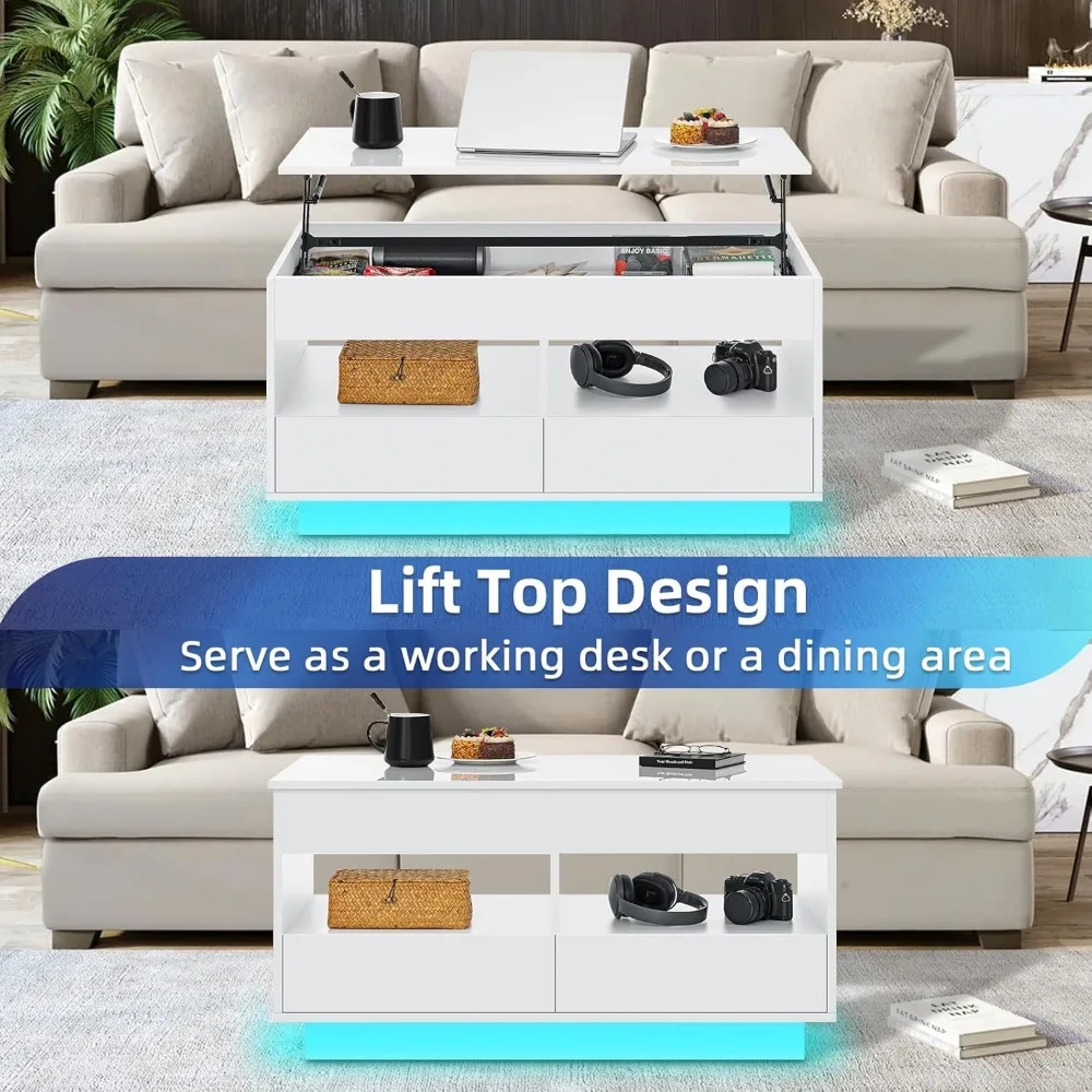 LED Coffee Table for Living Room Lift Top Coffee Table with Storage Morden High Gloss 4 Tiers White Tea Table Center Tables Sofa