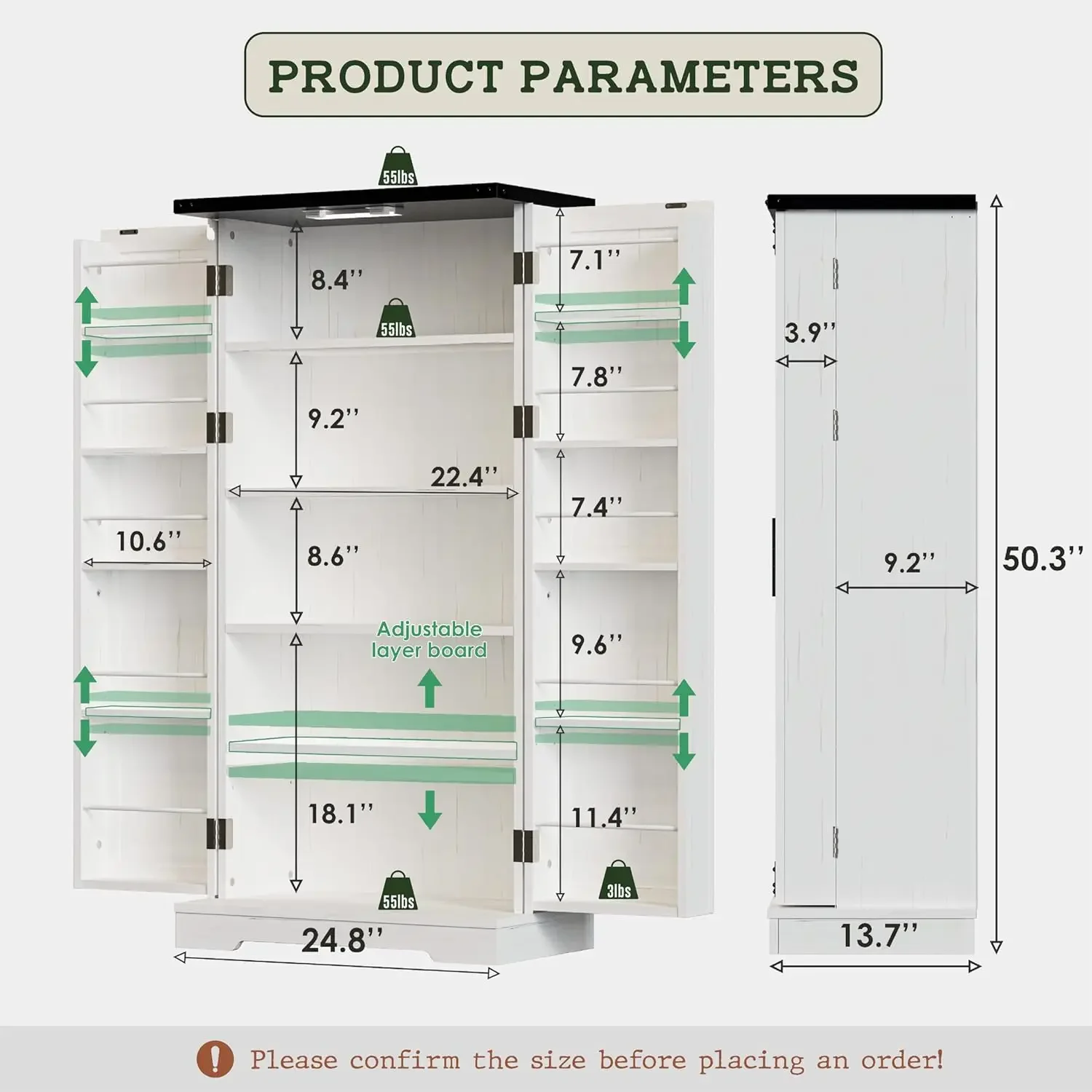 - 【Ample Storage for Small Space】Say goodbye to clutter and hello to organization with cute white kitchen pantry cabinets. With a height of 50″, it’s 9″ taller than other 40″ small pantry cabinets on the market, providing an entire layer of storage space. DIM of 25″W x 14″D x 50″H, it’s perfect for small kitchens, living rooms, and apartments that are tight on space