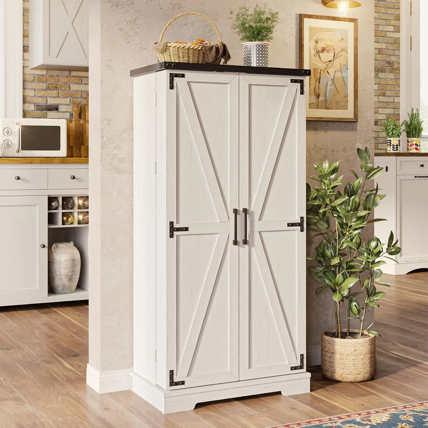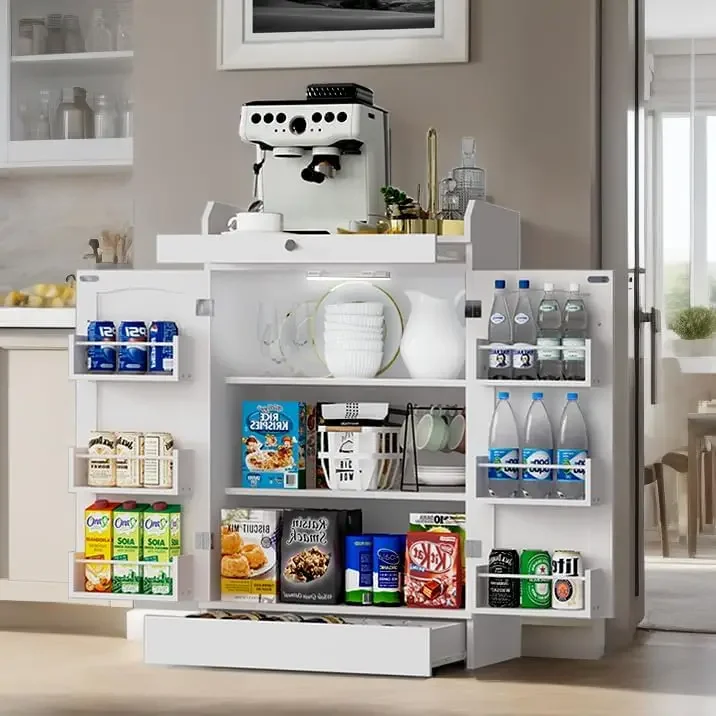 - 【Eco-Friendly and Durable】pantry storage cabinet is not only stylish and functional, but also designed to last. Made of solid MDF and particle board that meet US P2 Standard, it allows for proper air circulation. The entire surface is smooth, waterproof, and scratch-resistant, making it easy to clean and maintain. Enjoy long-lasting storage solutions that are both practical and environmentally conscious