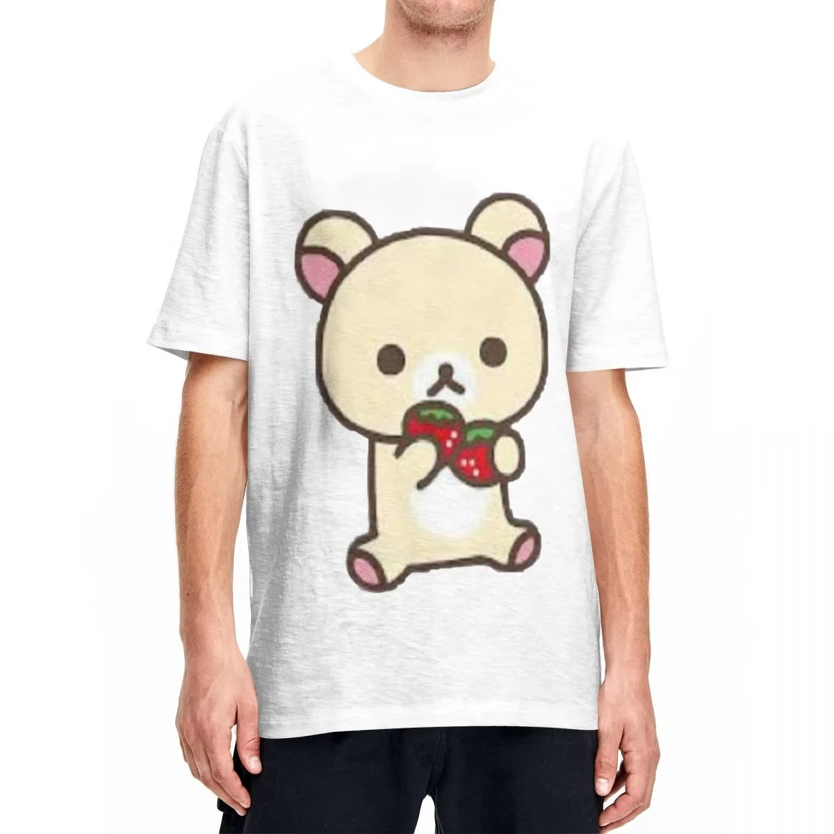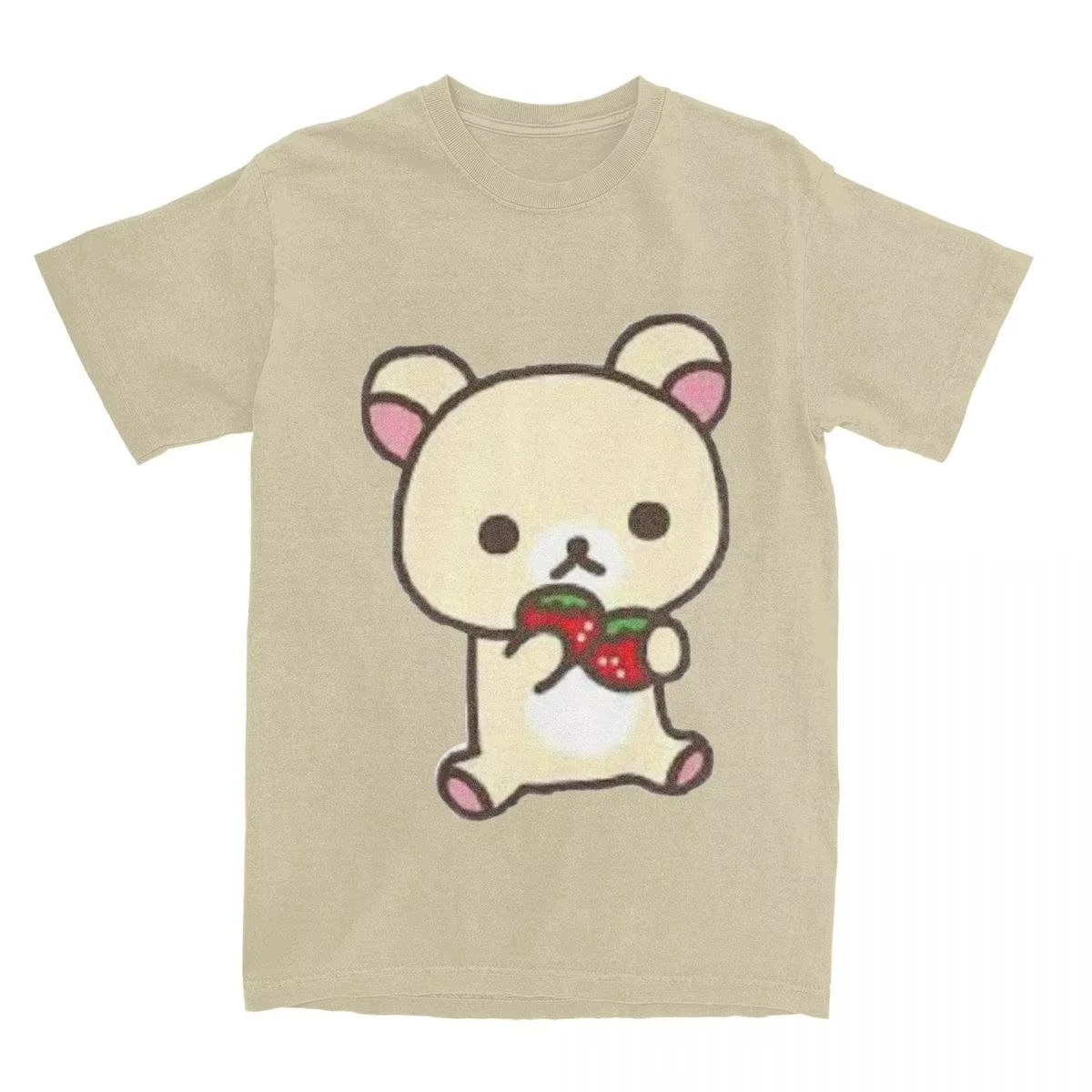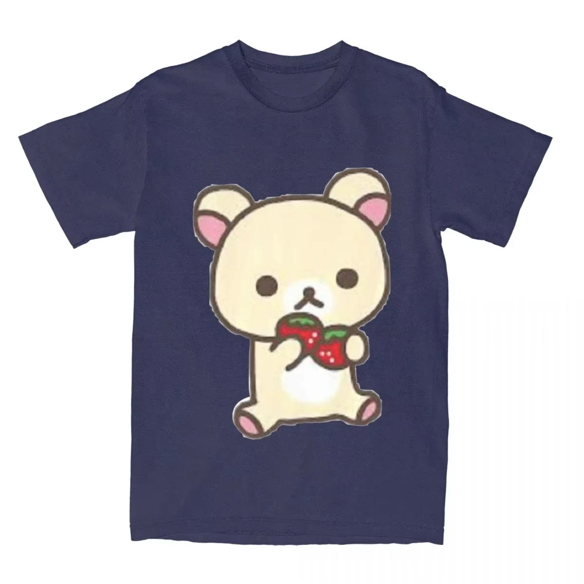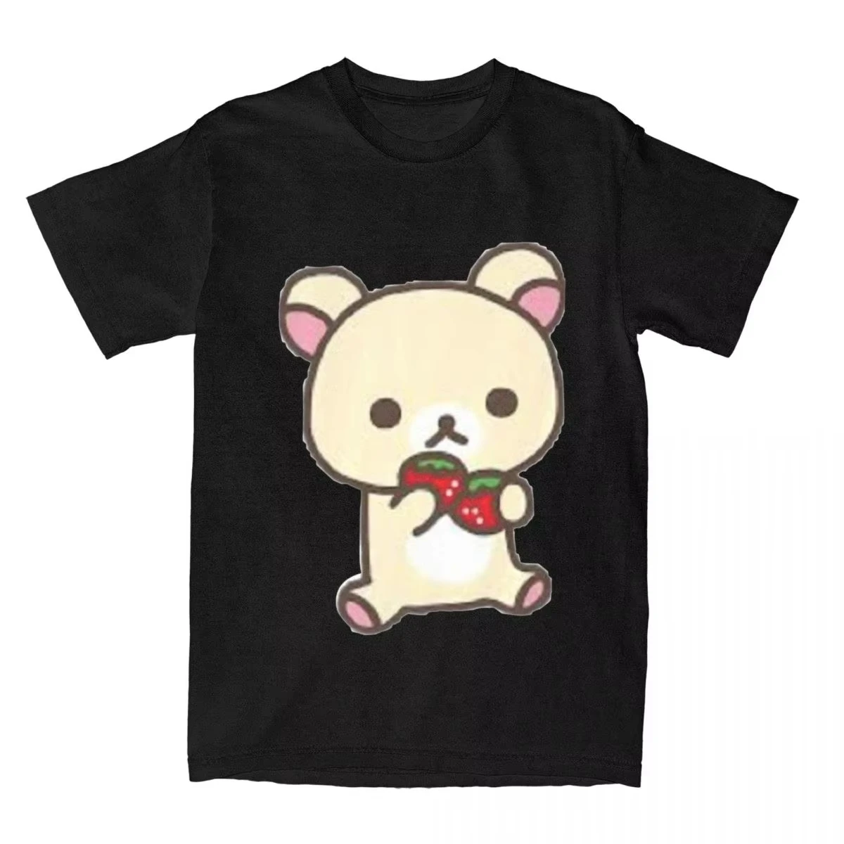 Leisure Rilakkuma Strawberries T-Shirts Men Women Round Collar 100% Cotton T Shirts Animal Bear Short Sleeve Tees Plus Size Tops