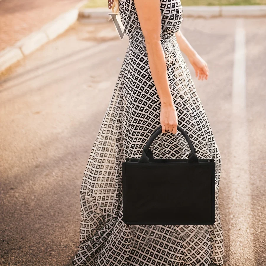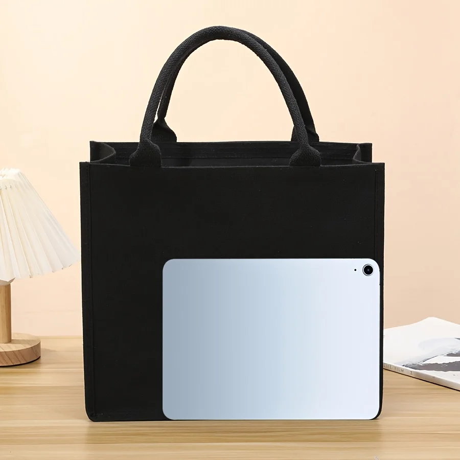 Leisure thickened handheld canvas tote bag black three-dimensional men and women large-capacity simple shopping bag handbags