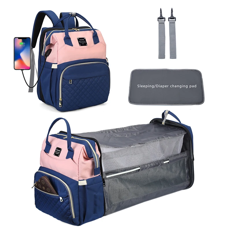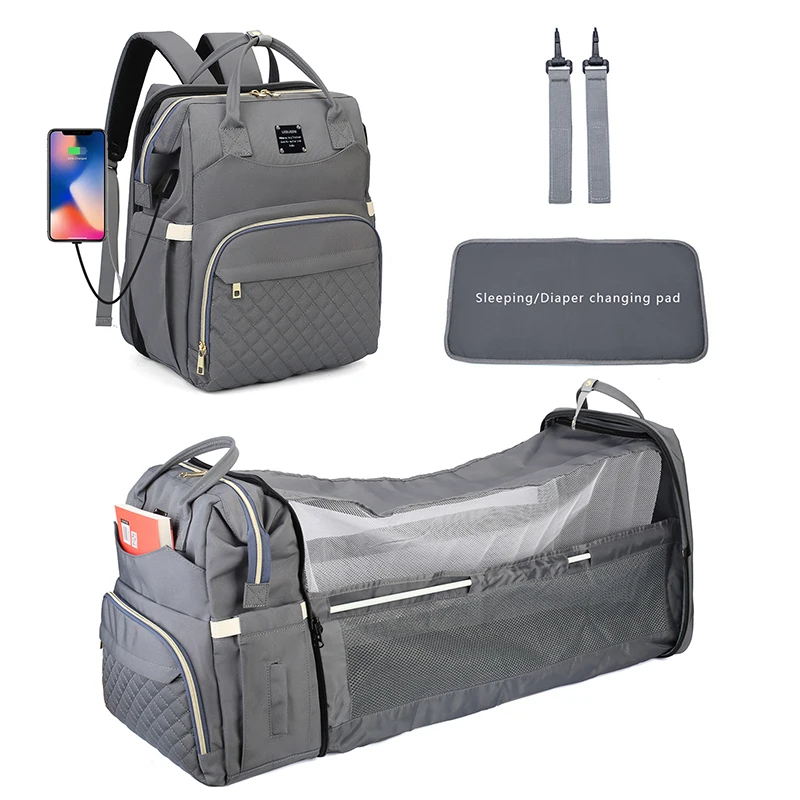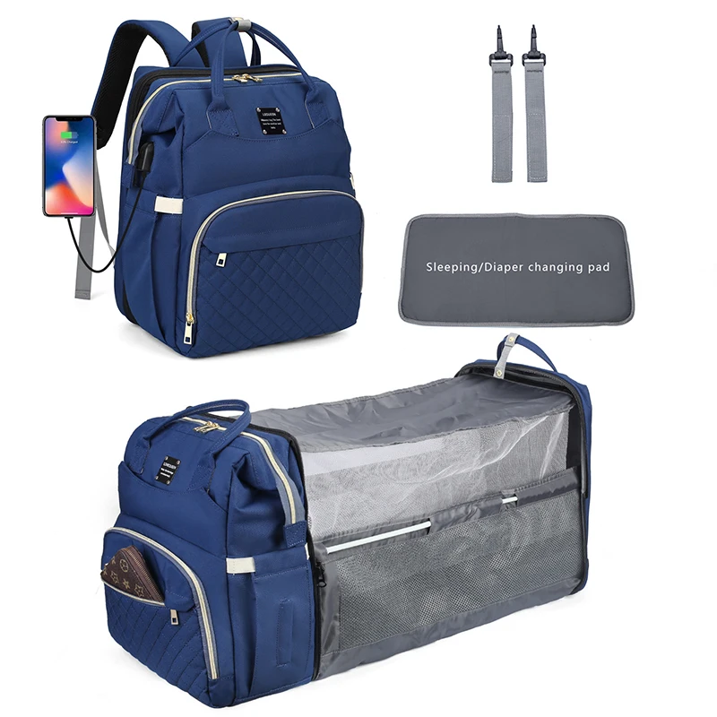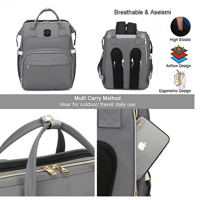 LEQUEEN Mommy Bag Lightweight Portable Folding Crib Bed Large Travel Maternity Bags Baby Backpack for Mom Mommy Outting Bag