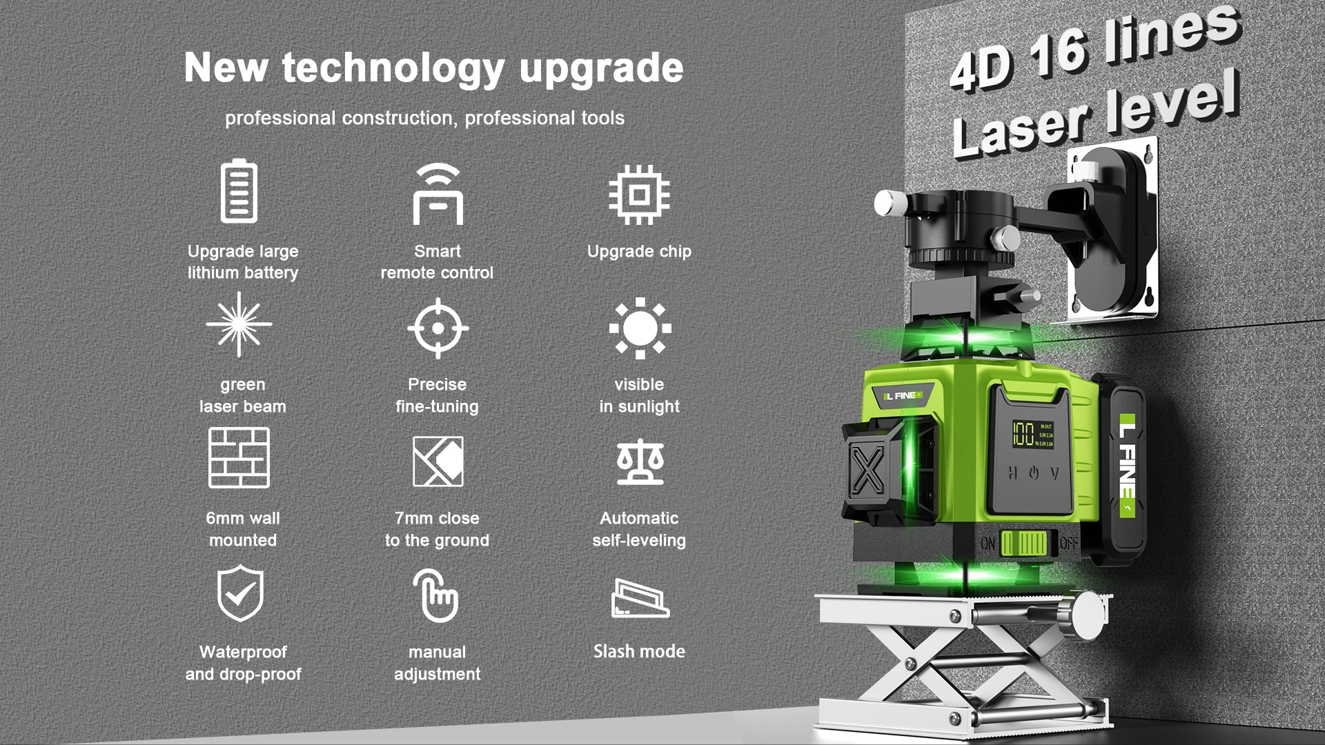 LFINE 16 Lines Laser Level Self-Leveling Horizontal and Vertical Cross Green Light Professional Nivel Laser Building Tools