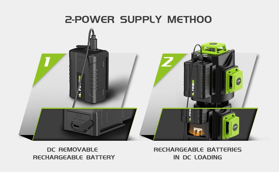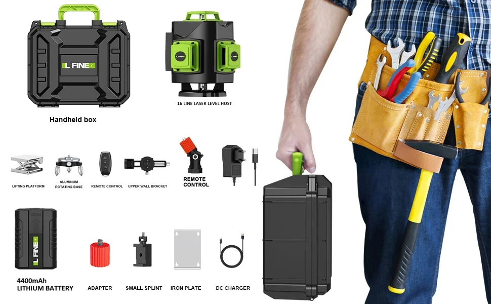 IP54 waterproof design protects the device from splashes, dust and construction debris. With 1 pcs 4400mAh rechargeable lithium battery, this laser level can maintain over 5 hours of continuous working with all 16 lines fully opened.