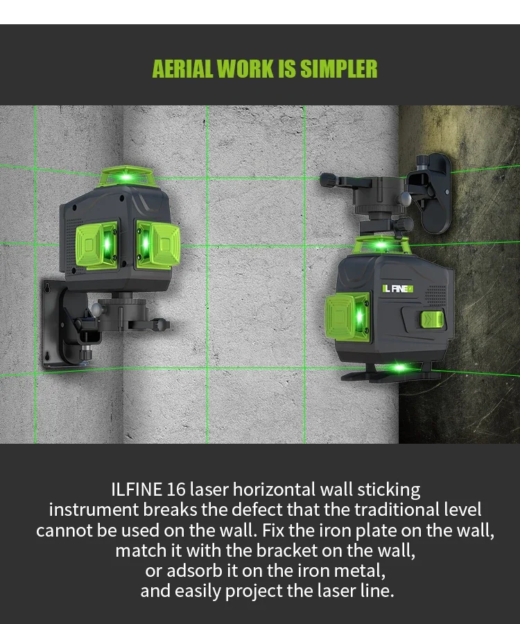 LFINE16 Lines 4D Laser Level Green Light Selfleveling 360 Horizontal And Vertical Green Beams US Plug Super Powerful Laser Level