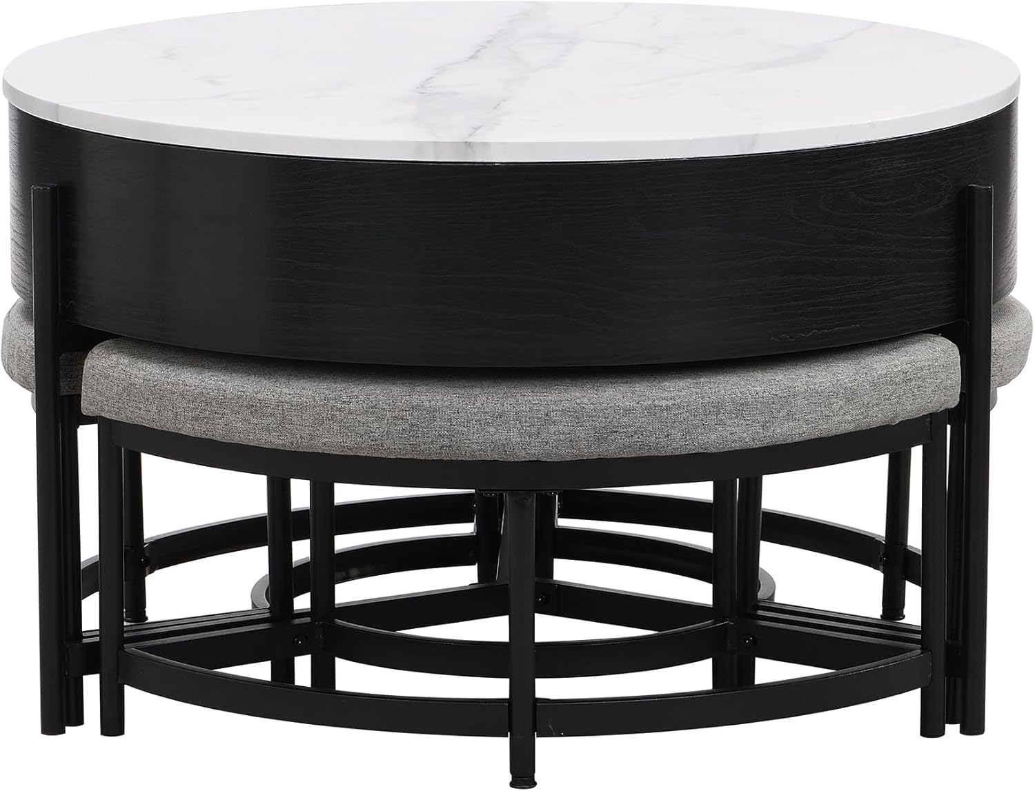 Lift-Top Coffee Table With Hidden Storage 3 Ottoman Marbling,Modern Accent Furniture For Living Room Home Décor, White/Gray